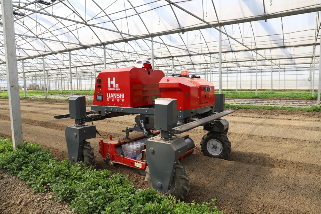 成立于2015年的联适导航,十年间深耕“智慧农业”赛道,在GNSS算法、多源融合定位导航、电机控制等核心领域达到行业领先水平,构建起“导航应用、精准作业、智能农机、农业机器人”四大产品线矩阵。此次获奖项目的背后,是企业硬核实力的支撑:51项权威荣誉资质、70余项参与制定的行业标准、85项发明专利,以及国家高新技术企业、国家级专精特新“小巨人”企业、农业农村部智慧农机技术装备重点实验室等重磅头衔,为项目研发提供了坚实的技术与资源保障。 “项目的初心,就是解决设施绿叶菜生产‘人难找’‘机难用’的老大难问题。”团队负责人在决赛路演中坦言。当前设施绿叶菜种植面临双重困境:人力上,“4个菜农300岁”的用工荒常态叠加大棚高温高湿、弯腰作业的高强度环境,劳动力缺口日益扩大;机械上,传统农机难以适配狭窄棚内空间,智能装备又受卫星信号屏蔽影响,作业精度与适用性双低。 针对这些痛点,团队从核心技术到产品落地实现四重突破。首先攻克精准导航难题:通过空间信息感知设备采集地块、障碍物数据,重塑为农机可识别的三维地图;创新采用GNSS、雷达与机器视觉结合的组合导航技术,以多源异构传感器紧耦合优化,在封闭大棚内实现±2.5cm级定位精度,彻底解决信号遮挡导致的定位漂移与重定位失效问题。 在此基础上,团队研发出覆盖“耕种管收”全流程的系列智能机器人,形成完整作业闭环。 •耕:新能源履带拖Tractor60E采用电驱动底盘,自主开发转向系统、自主导航系统,作业农具系统。可快速挂载旋耕机、起垄机等常规农具,实现无人自主作业与智能避障。 •种:国内首台氢能四驱四转播种机Cancer10N,通过太阳能直接把普通的水电解为氢气,将氢气存储在28个储氢瓶中。将氢气转化成电能,向整机提供动力完成农事活动。四轮独立转向支持原地360度掉头,最小转向半径远优于传统农机,播种深度与轴距可灵活调整,适配不同垄面。 •管:Cancer10N机器人可挂载打药单元与激光除草单元,依托精准导航实现定向作业,为作物生长保驾护航。 •收:电动蔬菜收获机VHT120-EV具备割台自动仿形功能,收割高度0-10cm可调,垄沟中心偏离小于4cm,仅需1人换筐即可完成鸡毛菜、米苋等叶菜采收,劳动强度大幅降低。 在安全与落地性上,项目同样亮点突出。团队研发的主动停障技术,结合毫米波雷达、激光雷达与深度学习算法,为机器人装上“智慧眼”与“聪明脑”,能精准识别动态障碍物并自动避障停障。目前整套系统已在上海浦东清美基地、奉贤庄行基地完成全流程验证,通过实际应用迭代优化,并形成规范操作程序,让智能装备真正“好用、易用”。 相较于人工与传统农机,该系列机器人优势显著:既规避了人工成本高、强度大的短板,又解决了传统农机污染大、精度差、维护贵的问题,精准契合《“十四五”机器人产业发展规划》《全国智慧农业行动计划(2024-2028年)》中“推进农业机器人应用、推动农机新能源转型”的政策导向。