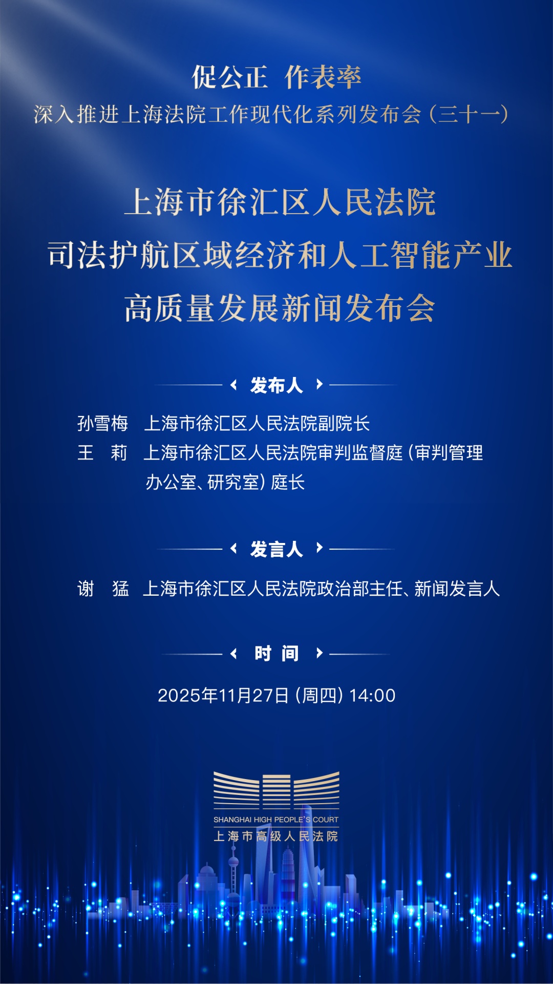 为进一步优化区域法治化营商环境,切实服务保障徐汇区科创中心重要承载区和人工智能高地建设,今天(11月27日),上海市徐汇区人民法院(以下简称徐汇区人民法院)发布《司法护航人工智能产业高质量发展十项举措》(以下简称十项举措)和《2025年度优化法治化营商环境十起典型案例》(以下简称十起典型案例)。