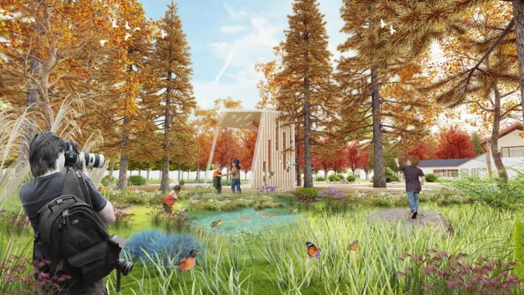 【森林学堂】融入不同生境空间(林下湿地、洼地、草地等),结合现状林下空间设置儿童活动设施、休憩场地,构建一处具有林下休闲、科普教育、亲子活动等功能的自然课堂。