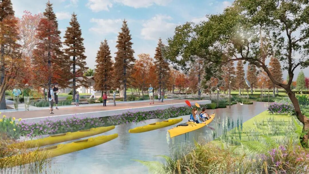 白露园首期实施范围约3公顷,建设将延续嘉定老城阡陌十字肌理与郊野原真风貌,充分依托林水交融的生态基底,通过“理水、造林、通路”等方式,融入新造林、贯通道建设等项目,重点营造森林学堂、白露驿站、创客码头以及湿地栈道等多个特色节点,形成“链上串珠,藤上生花”的空间格局。