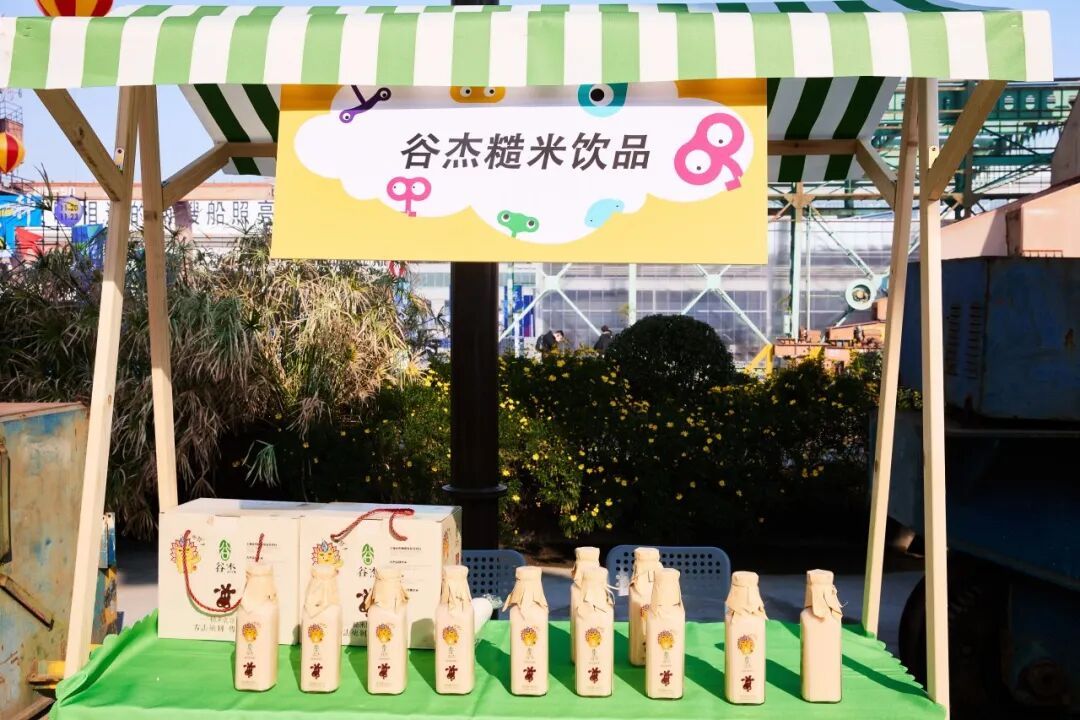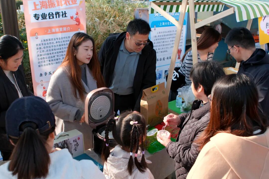 谷杰合作社摊位前,来自浦江镇的大米与创意米饮引来阵阵好评。米乳融合大米的清香与牛乳的醇厚,发酵米露清甜爽口,这些饮品不仅销售一空,还被询问是否有线上购买途径,足见不少游客对这份米香滋味念念不忘。