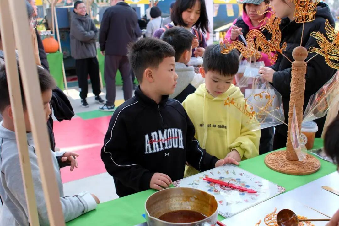 当套版葫芦的圣诞老人对着糖画龙眨眼睛,当年画里的福娃邂逅面人版奥特曼,这场民俗市集便成了文化传承最生动的课堂——老手艺在新世代的目光中,正焕发出跨越时空的鲜活生命力。
