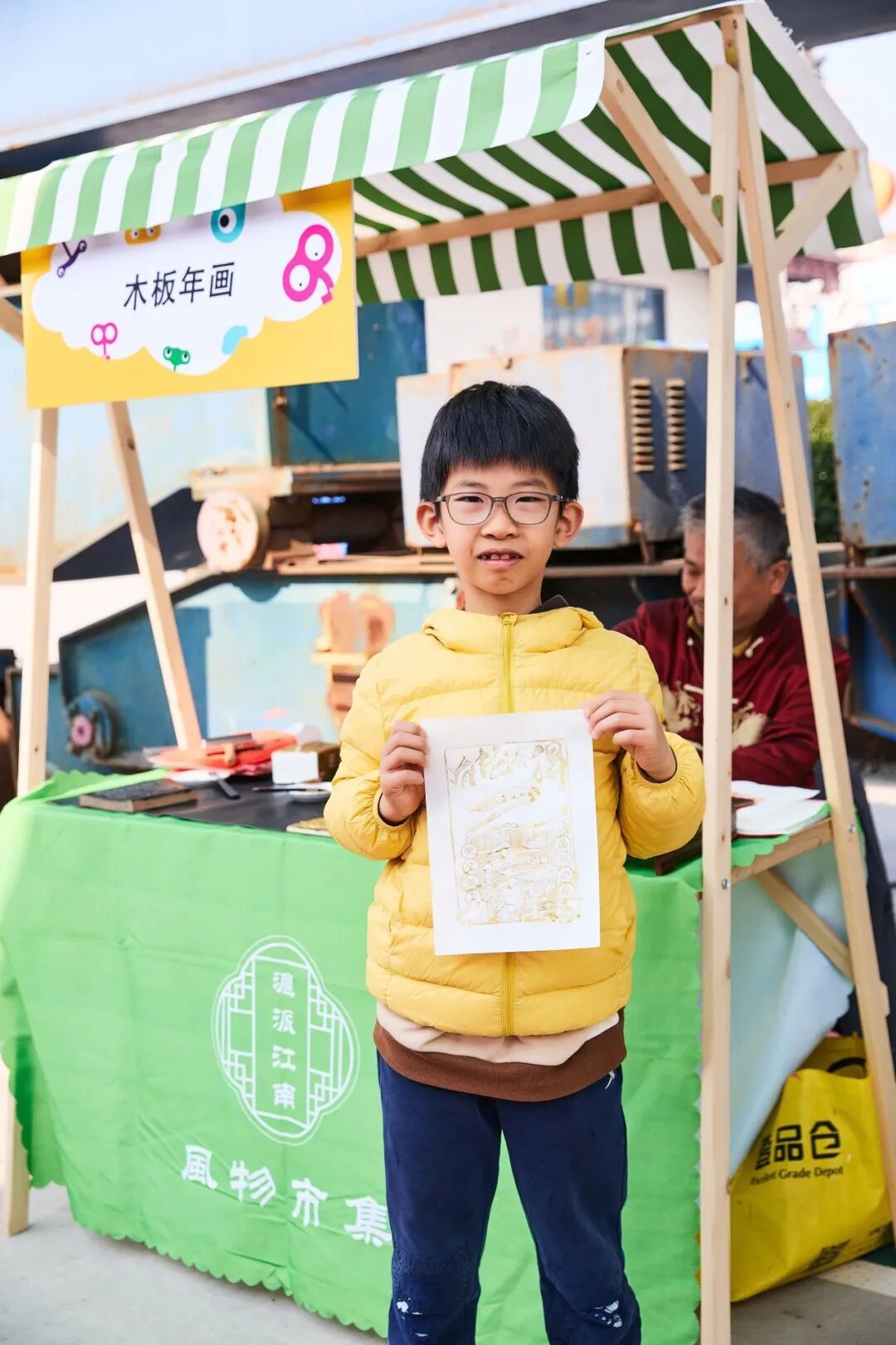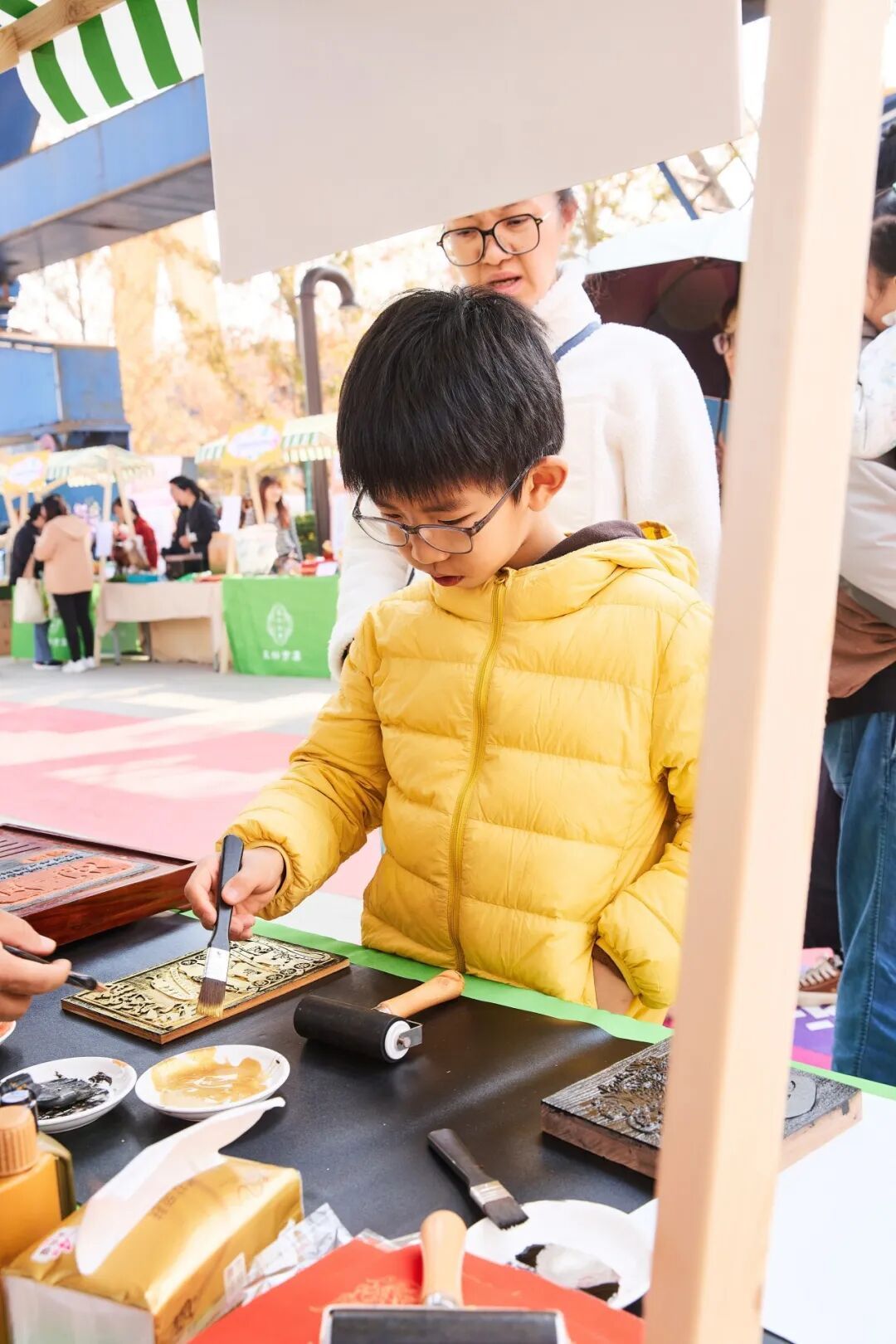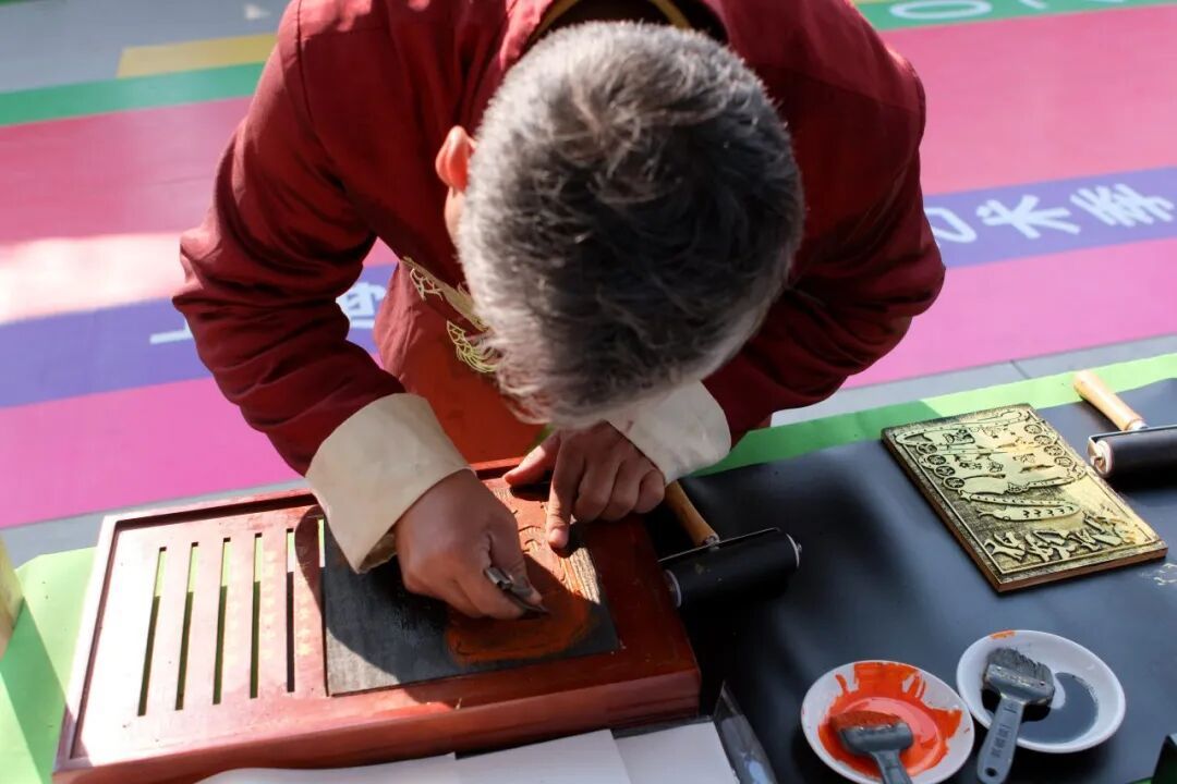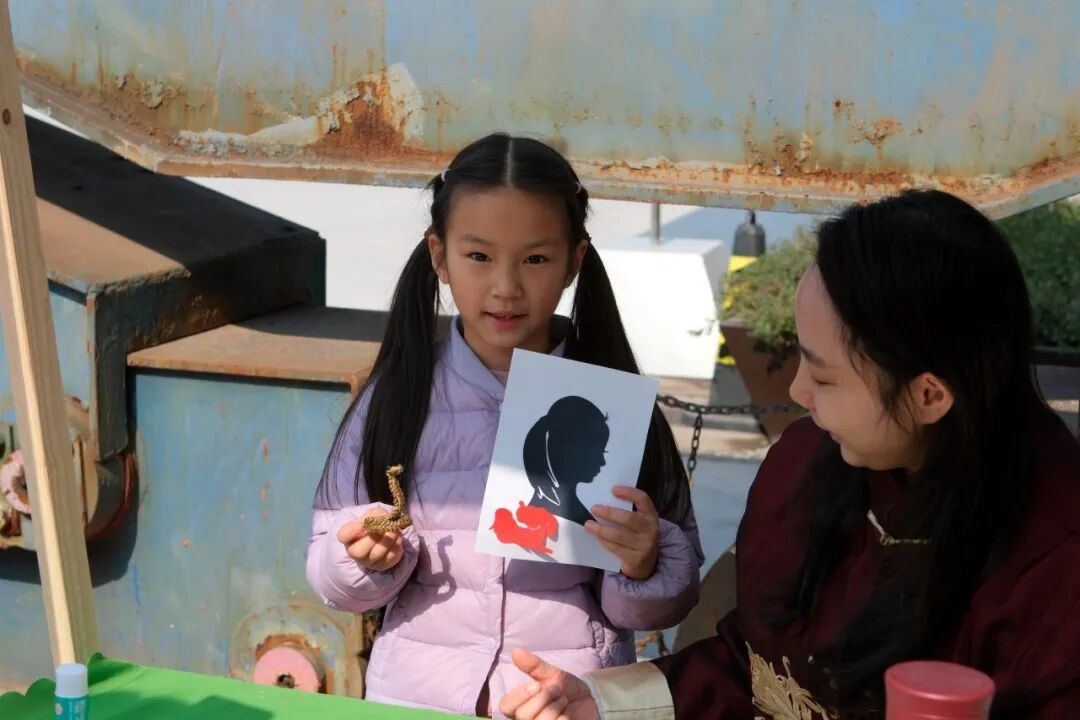 剪影师傅的剪刀在红纸上游走,三剪两刻便捕捉住女孩侧脸的娇憨;香包摊弥漫着艾草与丁香的清芬;木板年画拓印台前,师傅现场创造“平安”主题作品,朱砂与金粉在宣纸上晕开千年吉祥。
