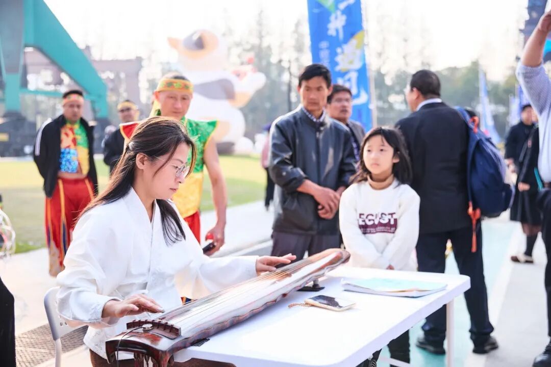 午后暖阳中,闵行的非遗舞台在古琴的悠远声韵里徐徐展开。古琴演奏家指尖流淌出《阳关三叠》的千年回响,七弦震颤间仿佛将渭城朝雨带到了现代市集。当琴师邀请小朋友上台轻抚琴弦,稚嫩手指触碰千年丝桐的刹那,传统民乐的种子已悄然播撒。紧接着,越剧名段在嘹亮唱腔中惊艳开嗓。表演者眼波流转,浑厚圆润的嗓音穿透市集的喧嚣,每个吐字都饱含戏曲艺术的深厚功底。