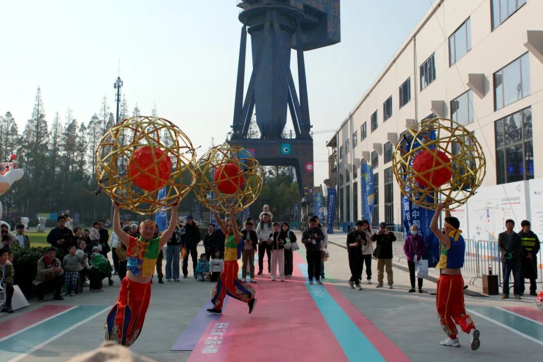 下午14:00和15:00两场非遗表演,将市集氛围推向高潮。奉贤滚灯率先开场——单灯舞者灵动登场,手中滚灯似有生命般腾转翻飞;与此同时,第五代传承人王正荣老师同步激情开讲,将滚灯的技法精髓融入每一个表演瞬间。原本穿梭于市集的市民纷纷驻足,挤向舞台前排,围起层层人墙,不少人高举手机对准舞台,生怕错过任何一个精彩帧。紧接着,组合舞段将现场推向沸腾的顶点!数盏滚灯齐亮相,舞者们默契变换队形,滚灯展转相环、旋转飞覆,每一次滚灯的精准操控、每一个舞者的利落转身,都引来阵阵惊呼与喝彩。