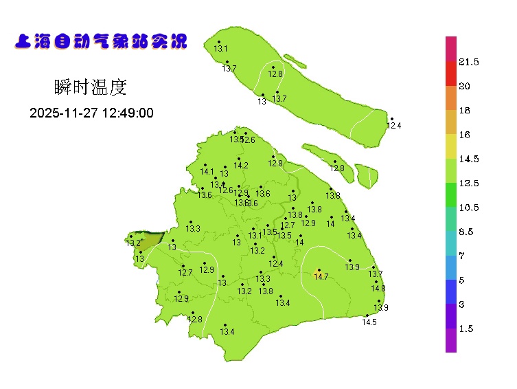 受冷空气影响,今天申城风力大增,近半数地区出现6级以上阵风。气温爬升无力,最高气温定格在13~15℃,市区徐家汇站13.5℃,比昨天低了近3℃。受上游颗粒物输送影响,今天本市能见度降低,出现浮尘天气,空气质量一度达到重度污染,敏感人群需加强防护。