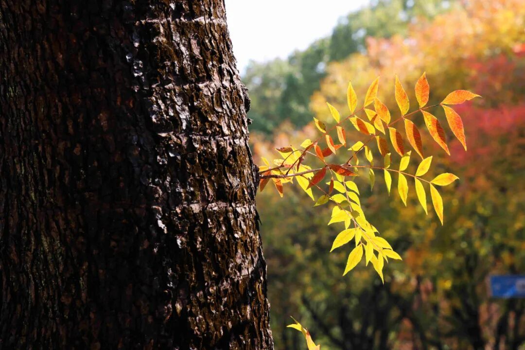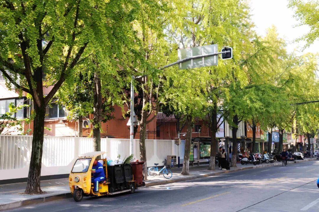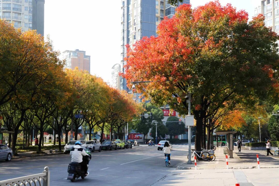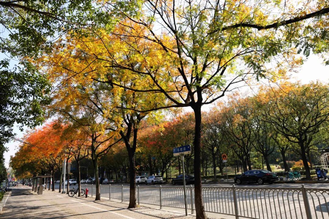 城市的气温在缓缓变化,街头的色彩也在悄悄更新。名都路的黄连木开始展露层次,莘凌路的银杏已泛起金色光泽,南辅路的无患子树用斑驳光影写下一页又一页的都市诗意。