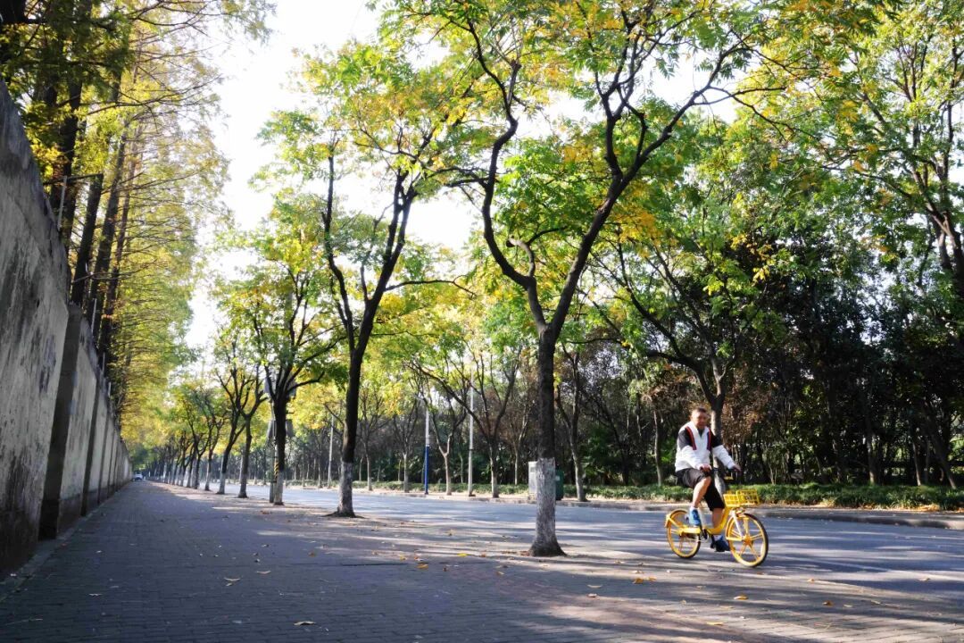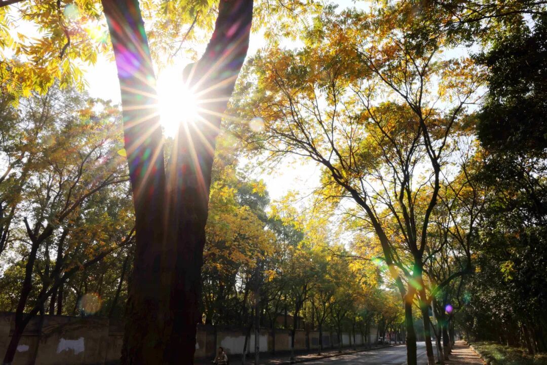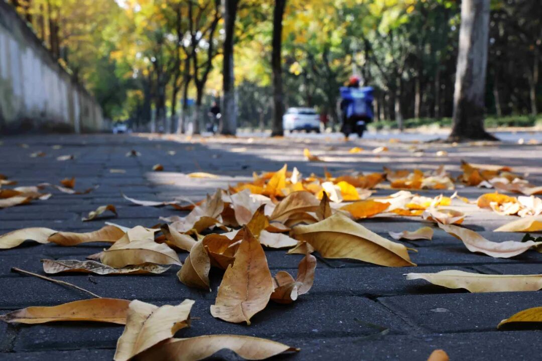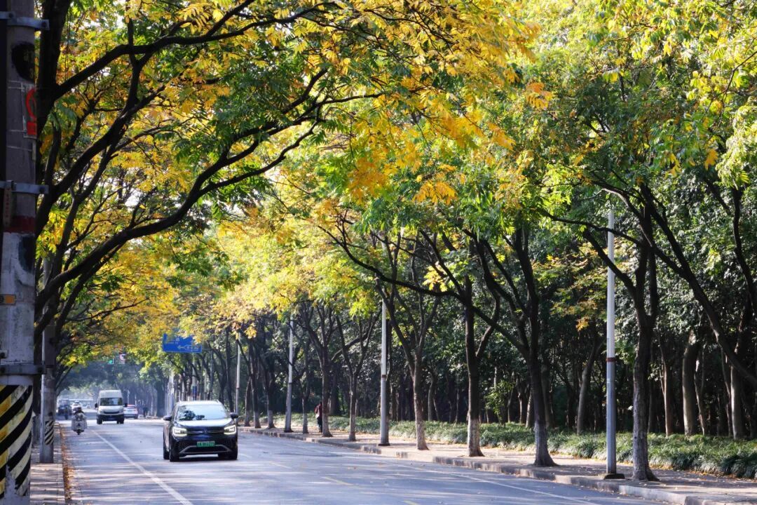 南辅路的无患子树,像给整条道路披上了一层油画滤镜。光从树冠间洒落,叶片轻落地面,让漫步的人不由得放慢脚步。