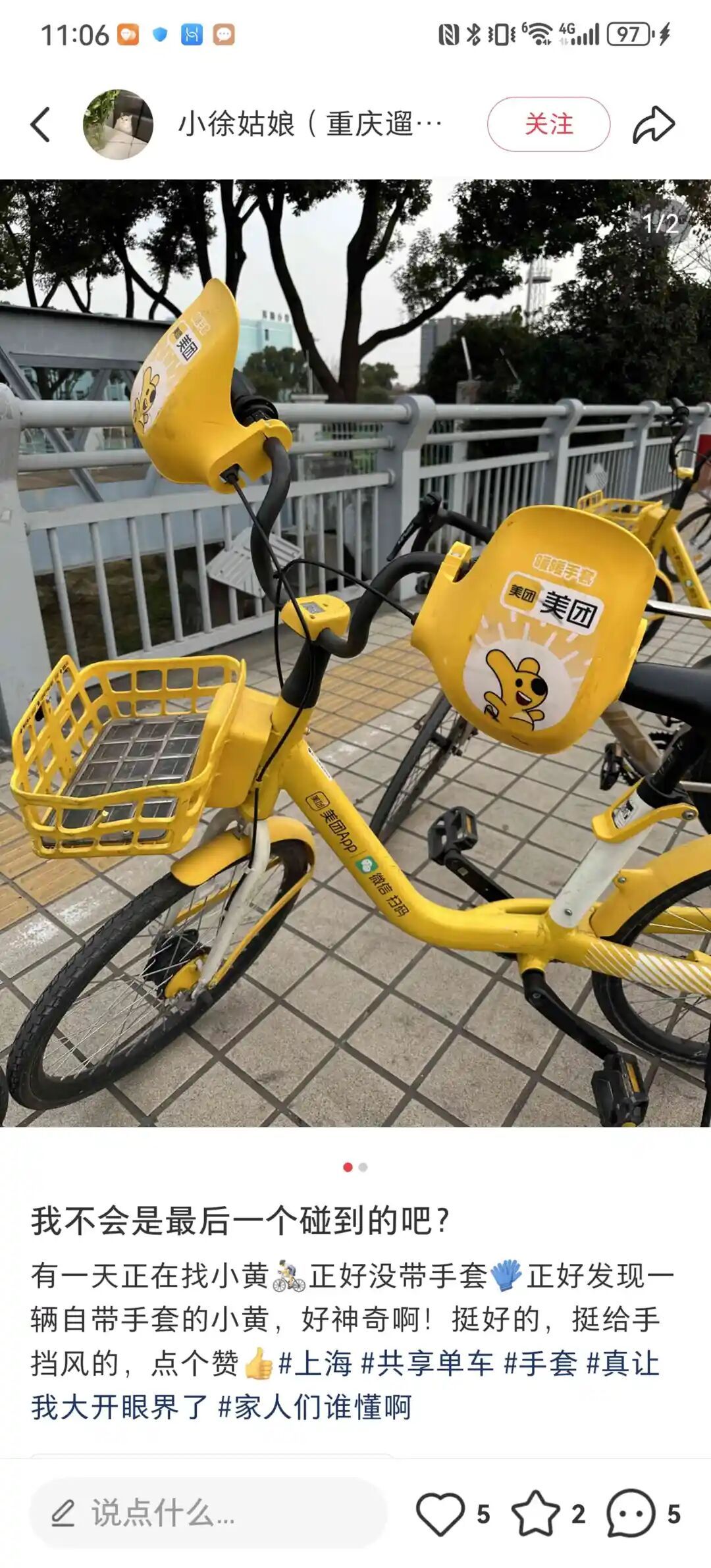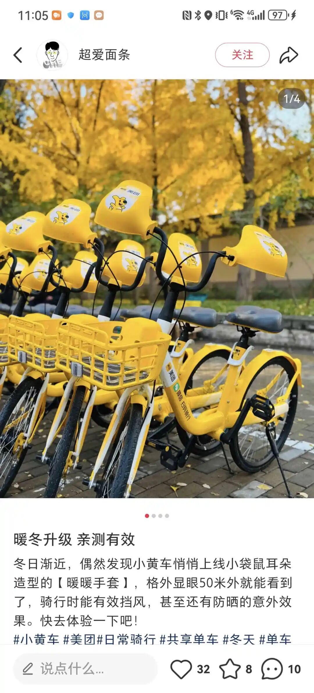 如今,共享单车成为很多人“最后一公里”出行的好选择。但随着天气渐冷,“冻手”也成为困扰很多汽车人的难题。近日,记者在社交媒体上发现,一批 “戴手套” 的共享单车引发热议,网友纷纷点赞这一 “可爱又实用” 的城市暖心设计。