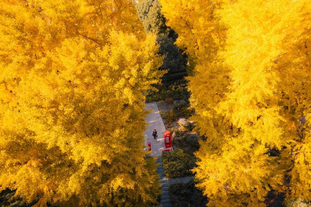 十株百年银杏如期披上金甲。