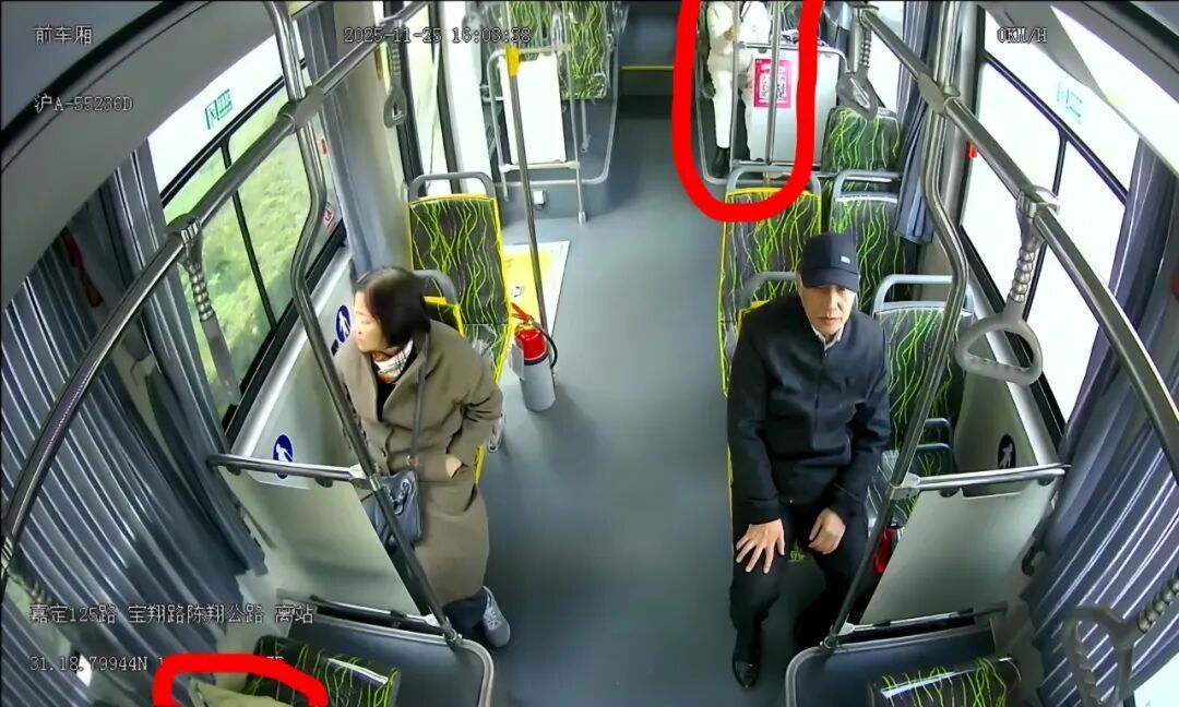 当天下午4时许,手提多件行李的方女士在宝翔路陈翔公路站登上嘉定125路公交。上车后,她径直走向后排放下购物袋,随后返回车门处刷卡,顺手将挎包放在了前排座椅上。刷卡后,方女士回到后排就座,完全忘记了还留在前排的挎包。