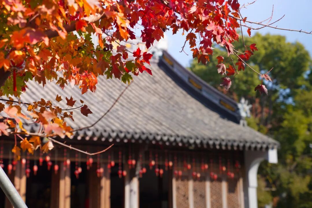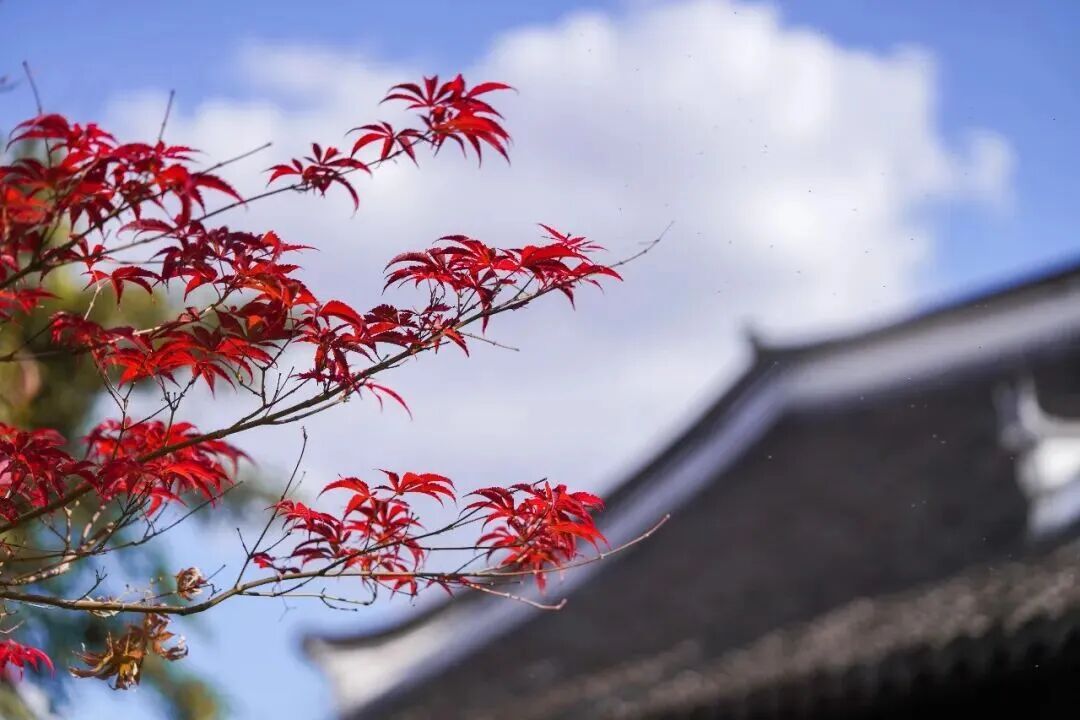 偶有枫叶从檐角探出头,如红霞晕染了古刹的静谧,游人举着相机,将“红墙金叶”的画面封存在秋日记忆里。