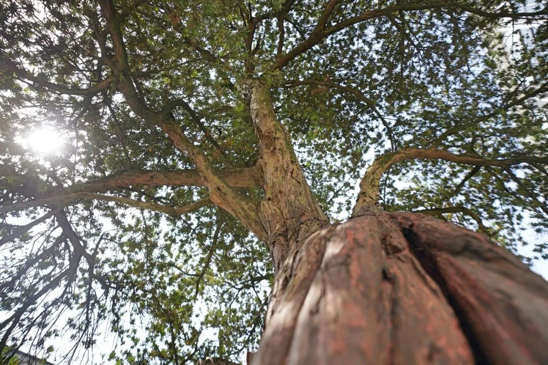 中共奉贤县委旧址的庭院里,枫叶正红得热烈,恍惚间能看见百年前“曙光”初燃的热血。庭院角落的罗汉松苍劲挺拔,翠色枝叶在秋风中舒展,与火红枫叶相映成趣。