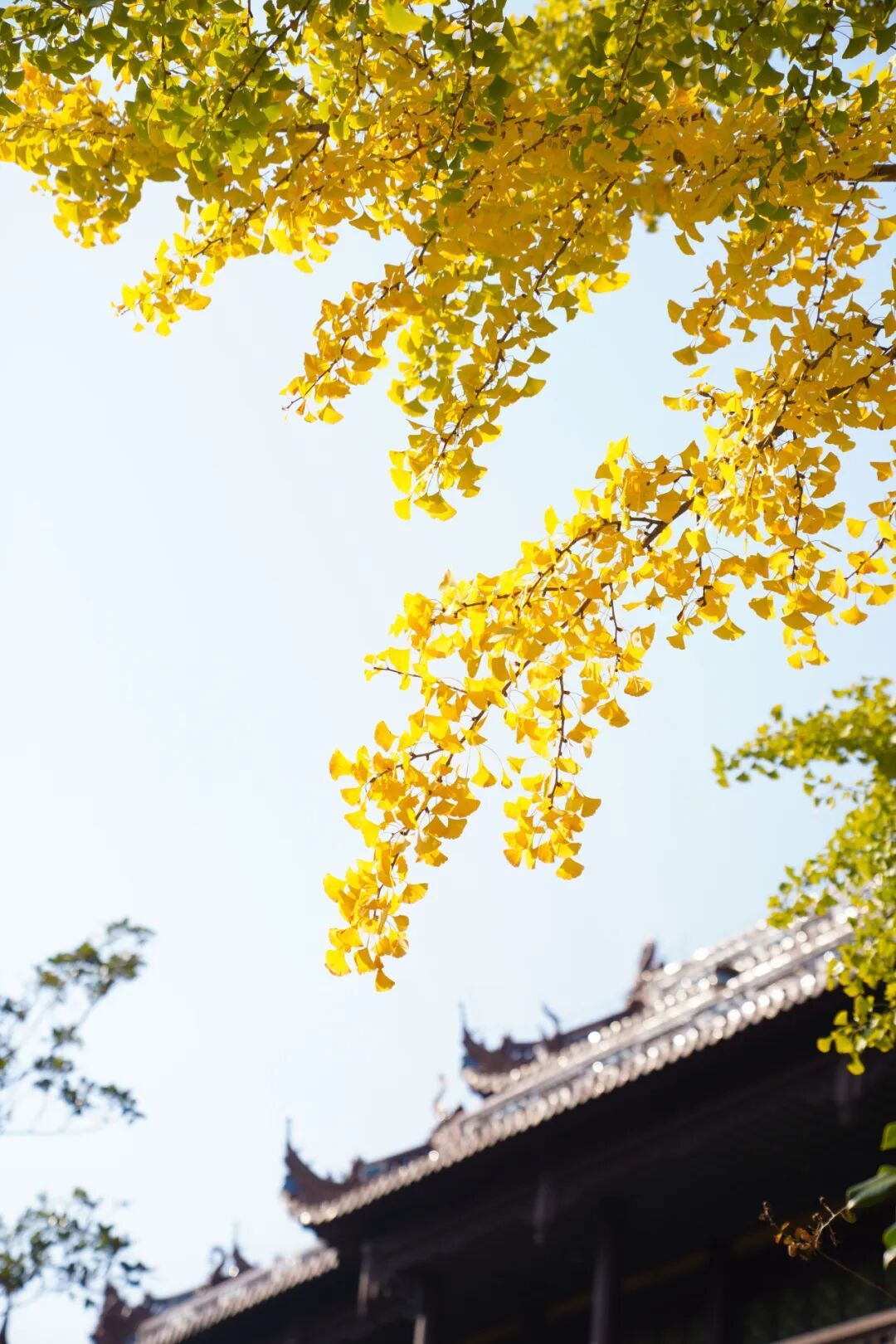 在万佛阁的红墙黛瓦间,银杏正抖落满身金箔,叶片簌簌落在青石板上,与殿宇的朱红立柱相映成趣。