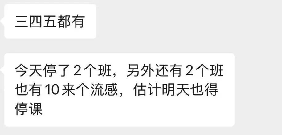 “三四五(年级)都有,今天停了2个班,另外还有2个班也有10来个流感。”