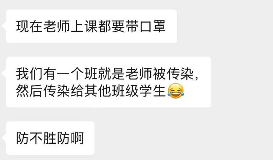谈起感染源,这位老师表示“防不胜防”,这一波流感传染性太强了,“我们有一个班就是老师被传染,然后传染给其他班级学生。”