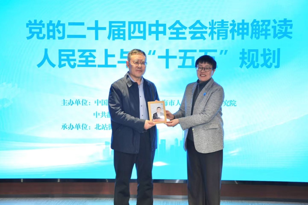 本次活动由中国社会科学院—上海市人民政府上海研究院、中共静安区委宣传部联合举办,北站街道党工委承办,特别邀请辛向阳作《党的二十届四中全会精神解读,人民至上与“十五五”规划》专题讲座,并向他赠送一幅独具匠心的定制画像和《阅读苏河左岸》一书。