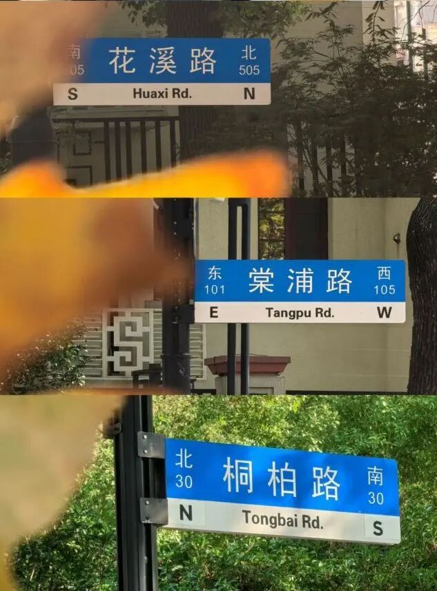 花溪路、桐柏路、棠浦路作为“落叶不扫”的景观主干道,基本上都是梧桐树,在靠近曹杨环浜的绿地中有少部分的红枫或是其他有色树种,阳光下的红枫树叶尤其惹人喜欢。