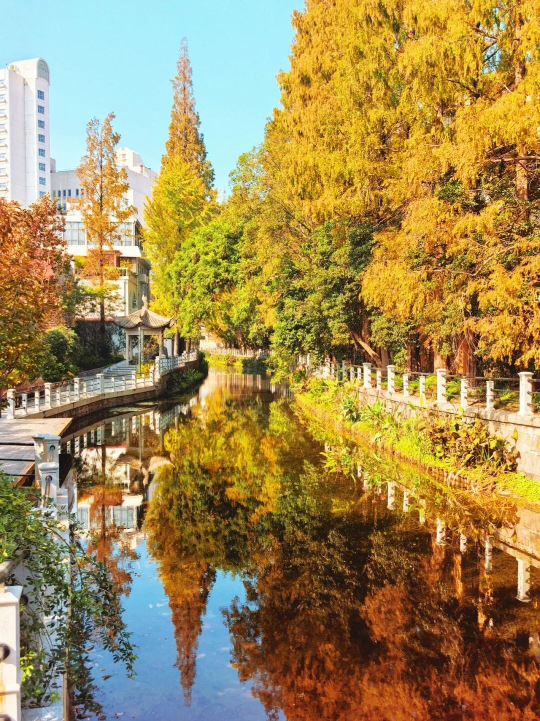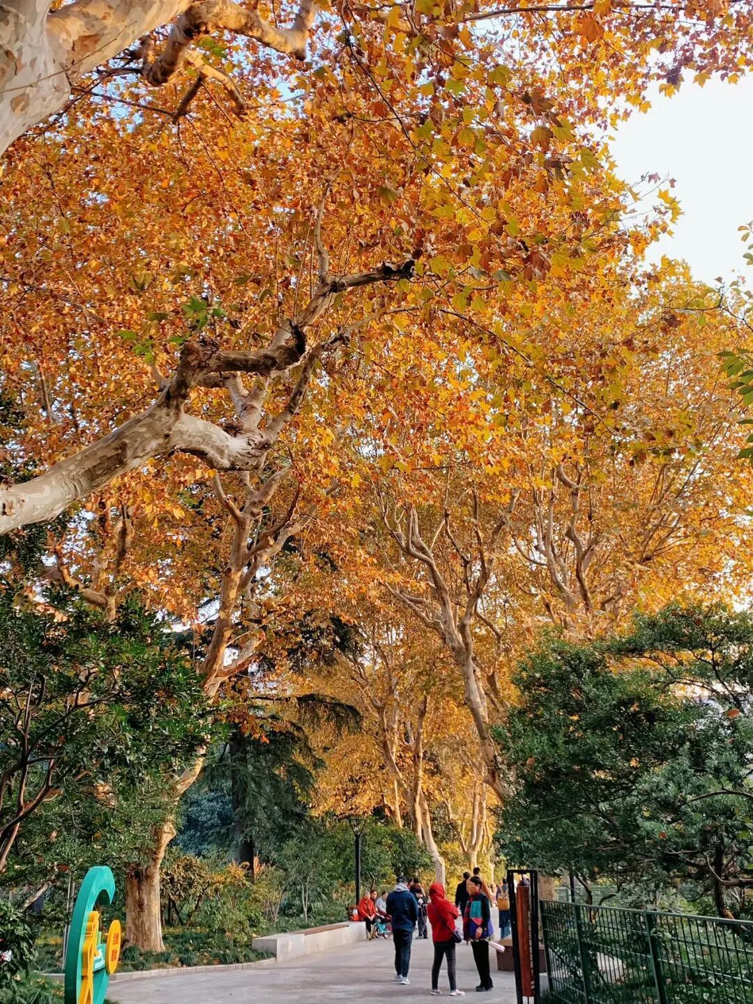 道路两侧的曹杨一村内也有金黄色的银杏树会跃入眼帘,结合人们的休闲活动拍摄也是不错的选题。