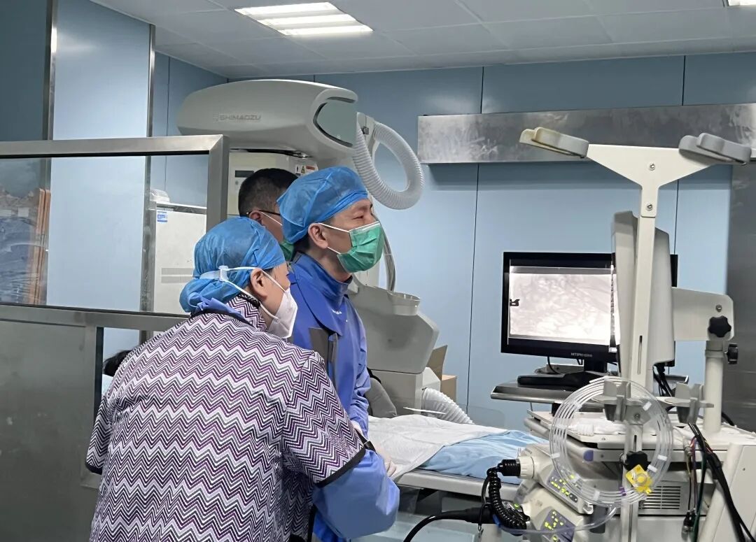 穿越“封锁线”:首先要将一根细长的导丝穿过肿瘤狭窄的缝隙。这需要极大的耐心和手感,患者肿瘤位置扭曲,肠道内粪便和血液堆积,视野极差,处于“看得见摸不着”的地方,陈华不断变换角度和位置,终于让导丝顺利通过。