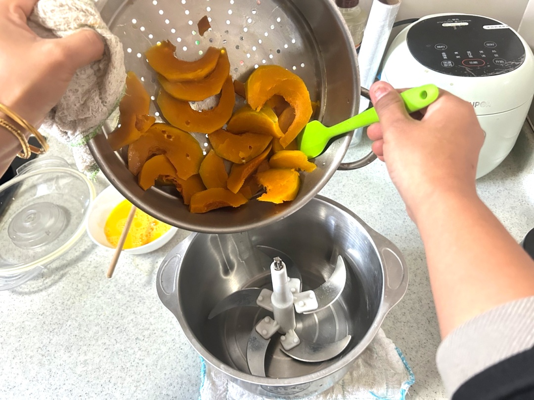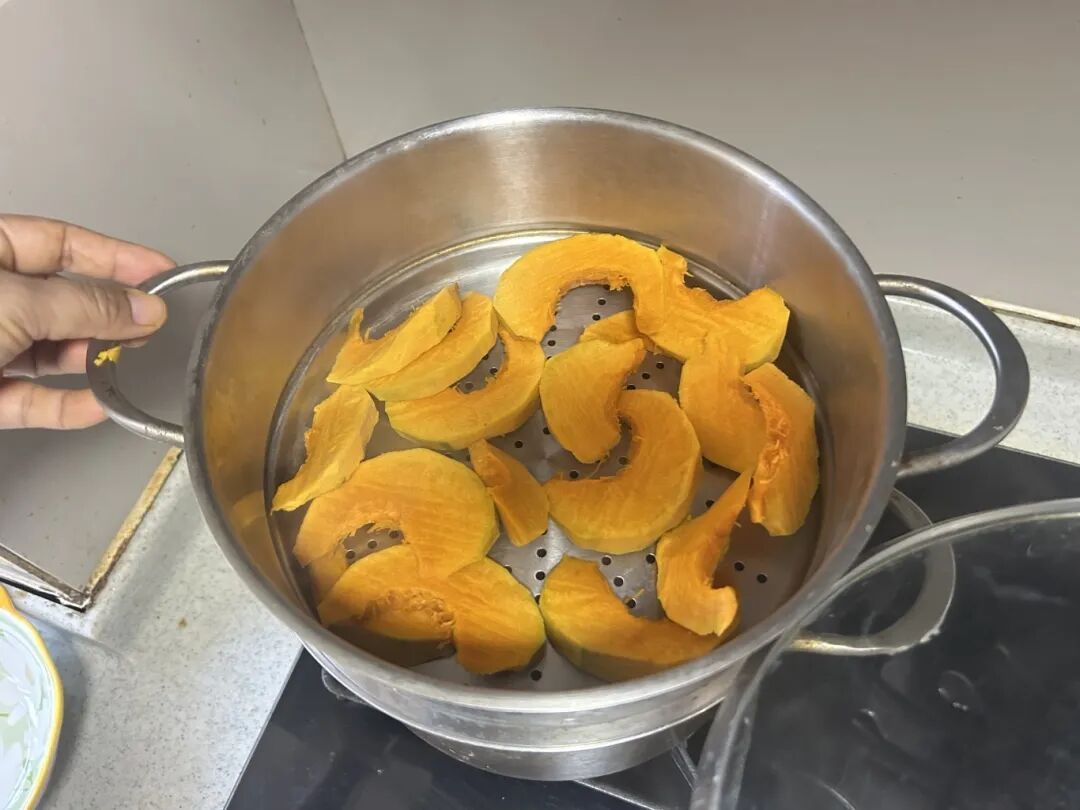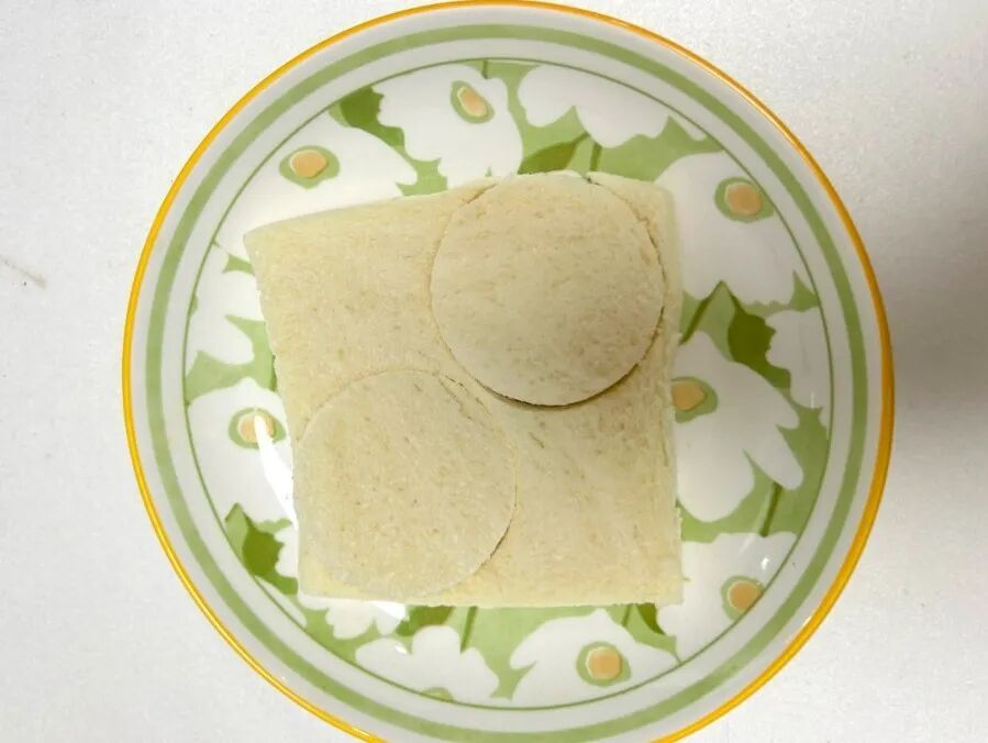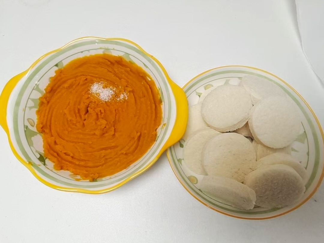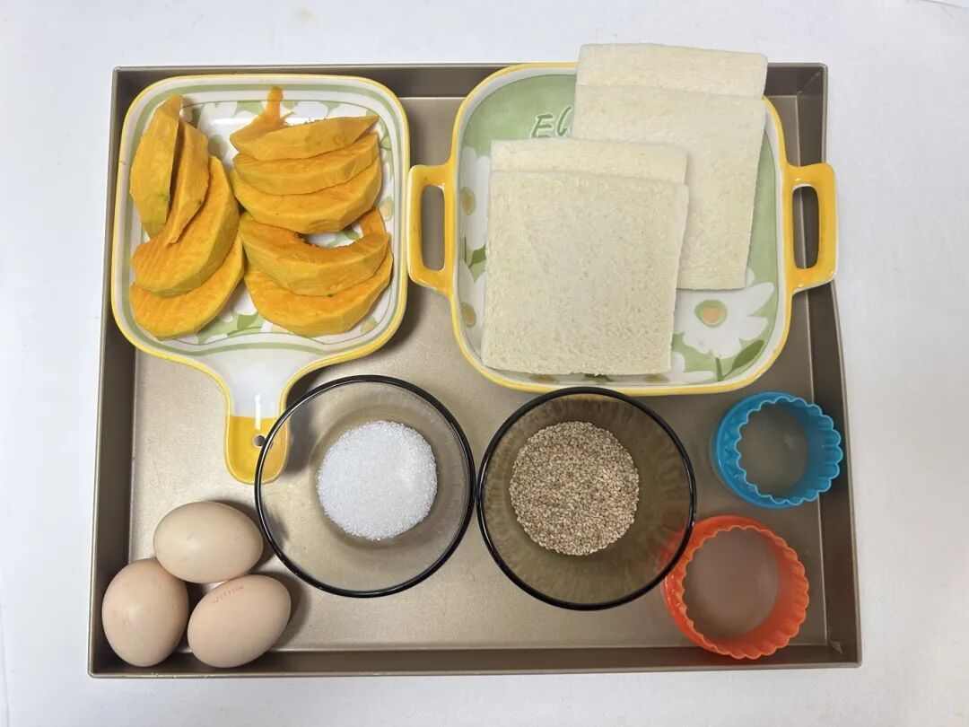 6.取一片吐司抹上南瓜泥再盖上一层吐司;