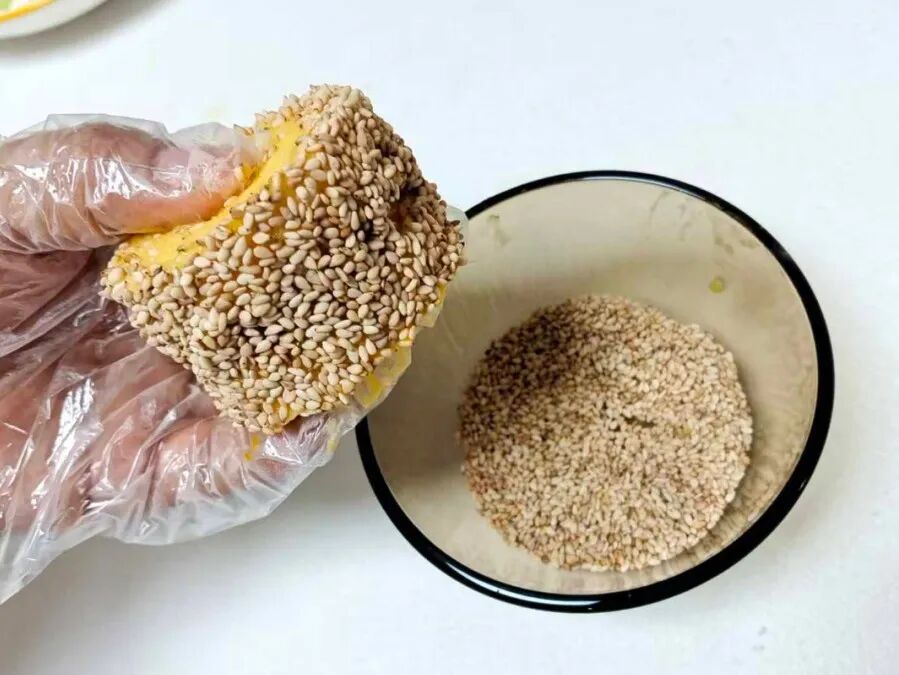 9.表面点缀黑芝麻,烤箱180度烤10分钟即可完成。