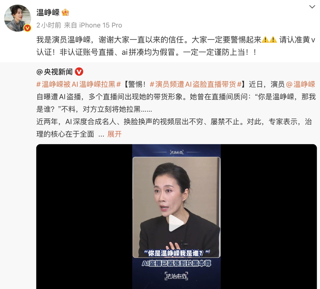 ⬇️⬇️⬇️ “在商场差点被骗了,一个50多岁的大姐举着手机对我说:小兄弟,我这卡号看不清,你帮我读一下…” “只要你对着视频说出4-6个数字,对方就能同时盗取你的面部识别加音频,生成AI的活体模型,接着破解你的身份证、银行卡、手机号,再用木马拦截短信验证码。” “全程不超过30分钟,就能在网贷平台疯狂借款!” 对着手机屏幕朗读数字 就能在短时间内背负高昂的网贷 真有这样的新骗术吗? “读数字即网贷”可能性不大 记者梳理发现,社交平台流传的相关视频,大多采用“亲身经历”式叙事,内容也高度相似:陌生人街头巷尾求助“读数字”,背后暗藏AI换脸网贷陷阱。其中,有一些视频更成为了点赞数、转发数都超过10万的“爆款”。 记者联系了上海市公安局刑侦总队,负责上海市反诈中心接警处置的二支队副大队长王烨华告诉记者:“根据办案实际,在上海目前没有这样的案例。” 王烨华分析,从视频描述看,在极短时间内通过AI换脸在网贷平台借款,可能性不大。“对着陌生人的手机朗读数字,确实能获取声音和脸部信息,可对方没有你的身份信息、手机号、银行卡等,也没有通过网贷平台,怎么贷款呢?”不过,他仍提醒广大市民提高防范意识:“泄露的个人信息容易被不法分子二次利用,总归是有安全风险隐患的。” 浦东公安分局刑侦支队副支队长、反诈中心主任傅炯杰同样表示:“我们没有接报此类案件。” 记者又采访了上海市信息安全行业协会名誉会长谈剑锋。他认为,视频中描述的情况在现实生活中实现的概率很低。“单从技术逻辑上来说,如今AI技术确实可以生成人脸模型,但效果如何,不能一概而论,也并非视频里所说的这么简单。我也没有碰到过这样的案例。” “AI换脸”已被用于违法犯罪 尽管视频中的描述比较夸张 不过记者检索信息发现 AI换脸技术确实 已被一些不法分子用于违法犯罪 此前多位名人都曾中招 本月初,演员温峥嵘遭AI盗脸直播带货。(戳看此前报道↓) 今年3月,知名演员古天乐、林峯的肖像、声音及过往视频片段被合成制作为带有赌博性质的代言宣传片。(戳看此前报道↓) 去年12月,“张文宏医生被AI换脸直播带货”事件正是不法分子利用AI换脸技术冒充其开展直播带货,诱骗老年人购买一些并不需要的商品。(戳看此前报道↓) 近期 南京市玄武区人民法院 也审理了一起案件 ⬇️⬇️⬇️ 被告人符某利用非法获取的195万多条公民个人信息和AI换脸软件,登录了23名被害人的金融平台支付账户。2024年10月,法院以侵犯公民个人信息罪、信用卡诈骗罪数罪并罚,判处符某有期徒刑4年6个月。 本案中的某金融支付平台,存在技术风险——符某利用AI生成的动态视频,比如左摇头、右摇头、张嘴等,就能登录平台,修改支付密码。对此,检察机关发出了法律风险提示函,目前,该金融支付平台已完成整改。 上海市公安局刑侦总队提醒 在日常生活中 应提高自我防范意识 避免随意泄露个人信息 除了解锁自己的手机 或在银行、随申办等官方软件中 验证需要之外 其他场景建议谨慎使用人脸识别 此外,业内人士指出,应用人脸识别技术的单位应采取更严格的安全措施,采用防伪鉴别程序等,以免被不法分子钻了空子。 戳这里为我加颗小星星⭐️ 公众号一言不合就改版, “星标”我才能更方便接收消息哦。 现在只需三步:近期,类似像下面的视频