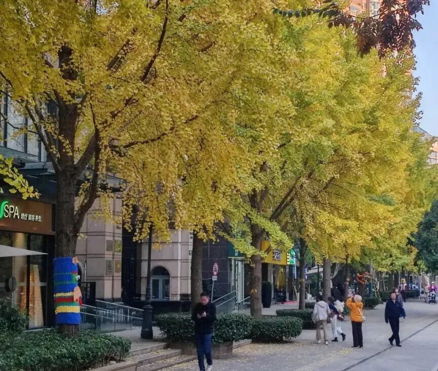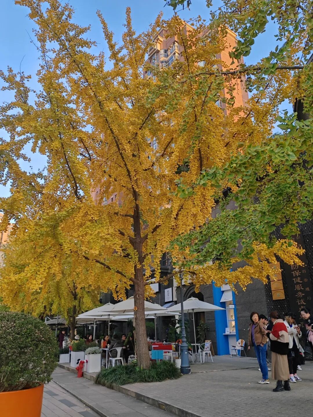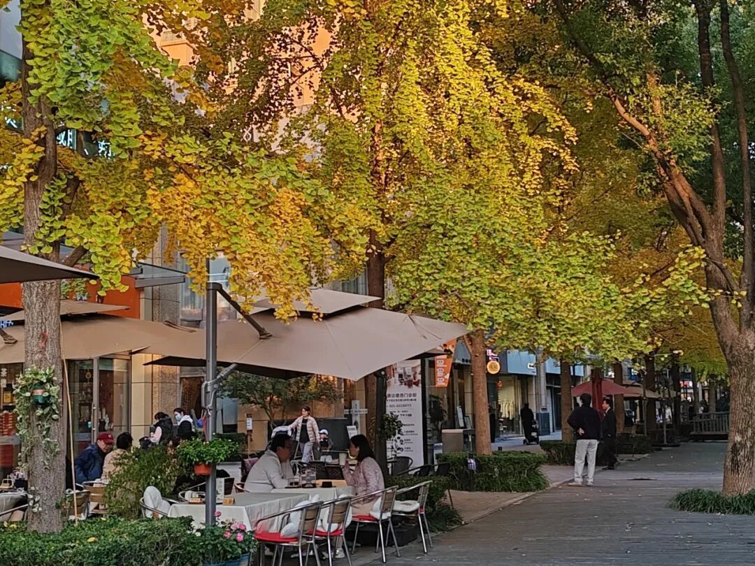 下午阳光斜照时,外摆区拍照最佳,背景是金黄的银杏,秒出氛围感大片!