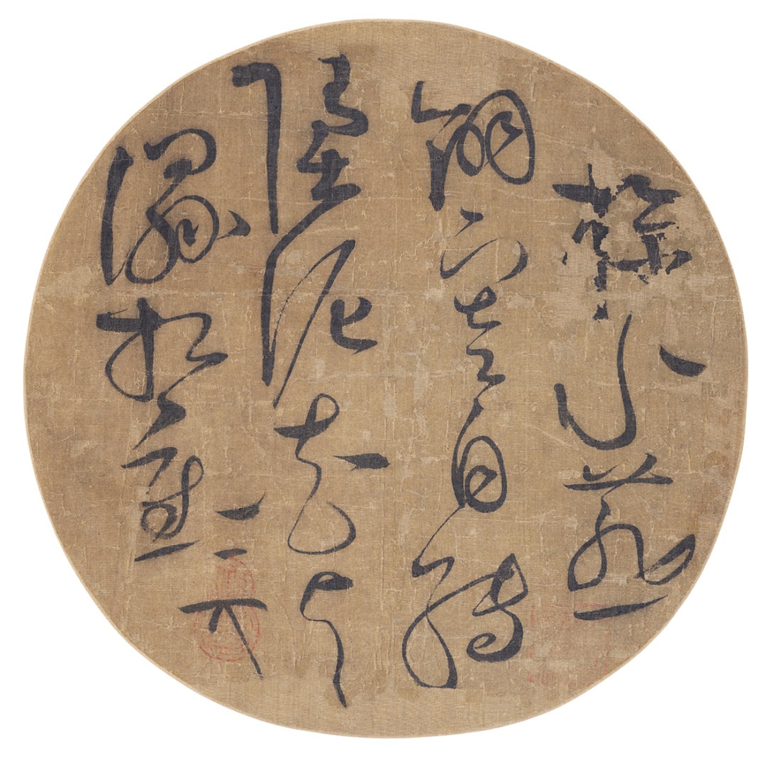 上海博物馆藏宋徽宗赵佶《草书七言诗二句》纨扇页,是现存年代最早的扇面书法作品。