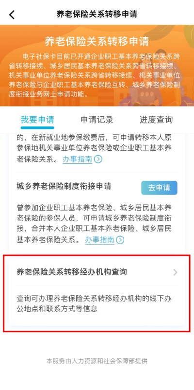 3.如有疑问,可通过“养老保险关系转移经办机构查询”获取各地社保经办机构地址和联系方式。