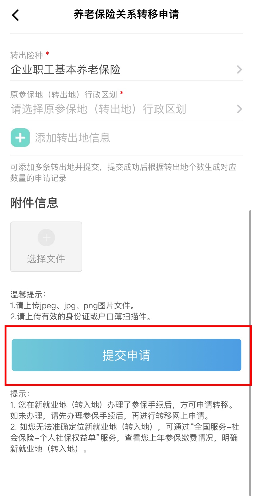 点击“提交申请”,跨省养老保险关系转移线上申请就完成啦!