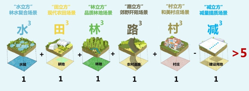 规划创新“郊野立方”时空复合利用政策,鼓励功能兼容、一地多能,提升空间资源利用效率和规划弹性适应能力。结合空间设计,青西牛角格在现状高程低、易积水区域规划“水立方”青线政策区,营造多样湿地空间。规划“林立方”,结合土方综合利用塑造微地形,鼓励林下空间复合利用。规划实施后,“立方”区域内的林、水指标可按照行业管理部门要求叠加统计。规划结合郊野道打造“路立方”,接入大青西环线,丰富道路景观风貌,串联激活沿线资源。规划结合保留保护村形成“村立方”,引导兼容乡村发展必要的公共服务设施、配套商业设施等。规划“减立方”,支持盘活存量低效工业用地、低效设施农用地等,为新质产业功能导入预留发展空间。同步探索研究“田立方”,支持现代设施农业发展。