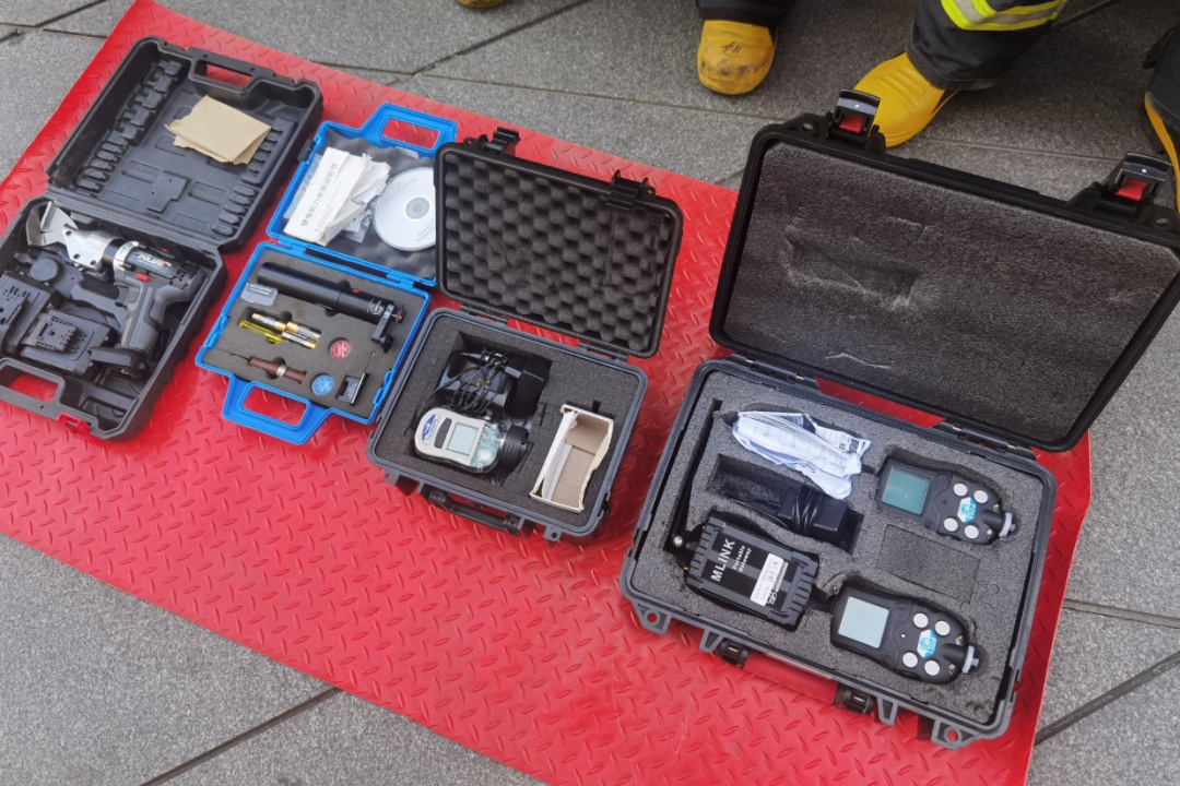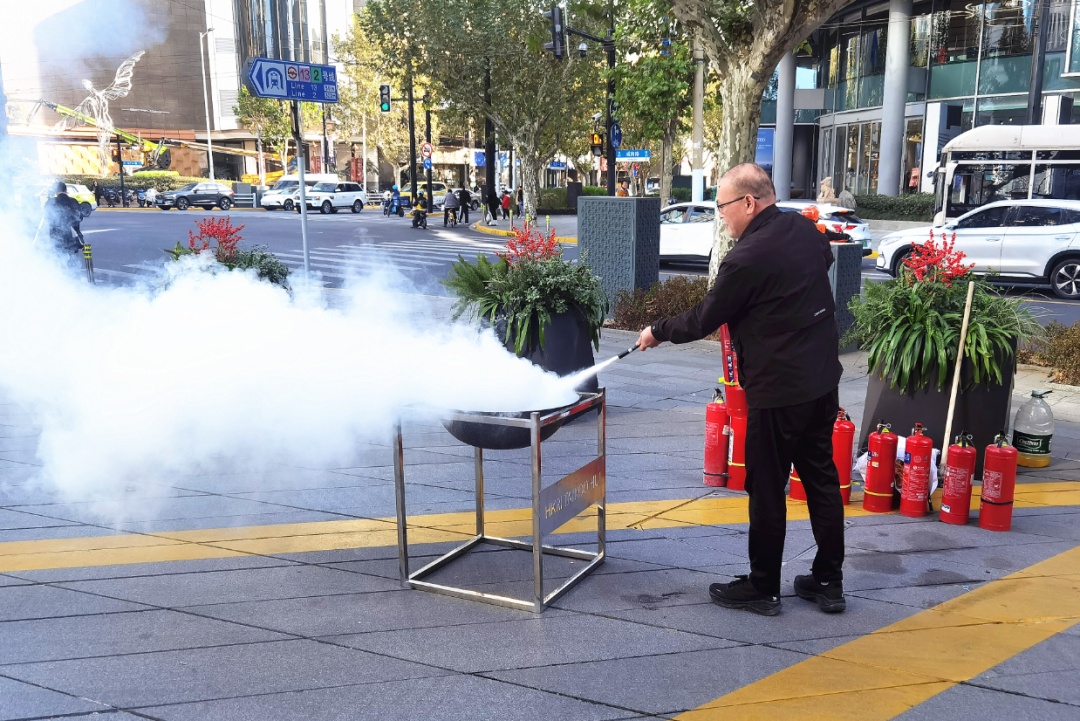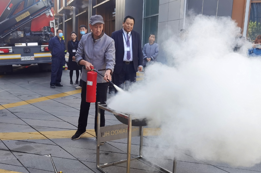 在高效、有序完成应急综合演练后,大家来到消防救援装备展示区,向消防队员了解各种消防救援装备的使用方法,体验干粉灭火器“提、拔、握、压”的正确使用要领,在实际操作中提高个人安全意识和自救互救能力。