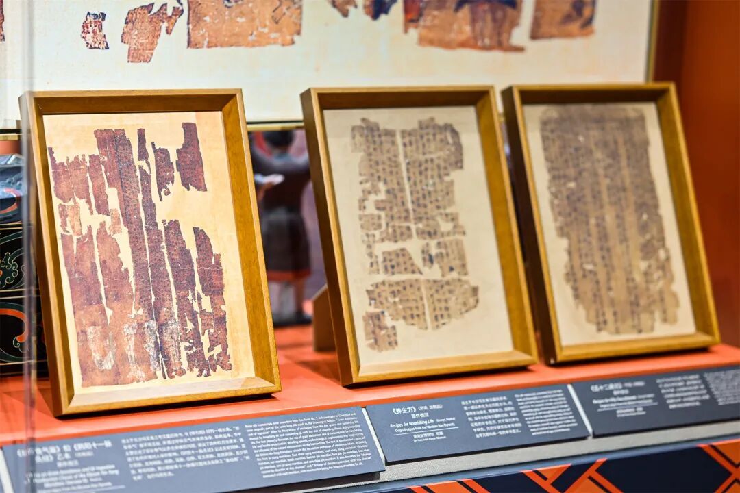 本单元从展现古人运动智慧的《导引图》拼接图,到《五十二病方》《养生方》等以养生保健为主题的帛书,从借展自湖南省博物馆的小漆盘、长方形粉彩漆奁,到上海体育大学博士生导师邱丕相教授研究马王堆导引术时的手稿,不仅揭示了马王堆《导引图》的千年奥秘,还印证了这些古老的智慧至今仍在现代体育、医学和养生实践中焕发活力,导引图所蕴含的天人合一的哲学,持续为我们的身心健康提供着深远启示。