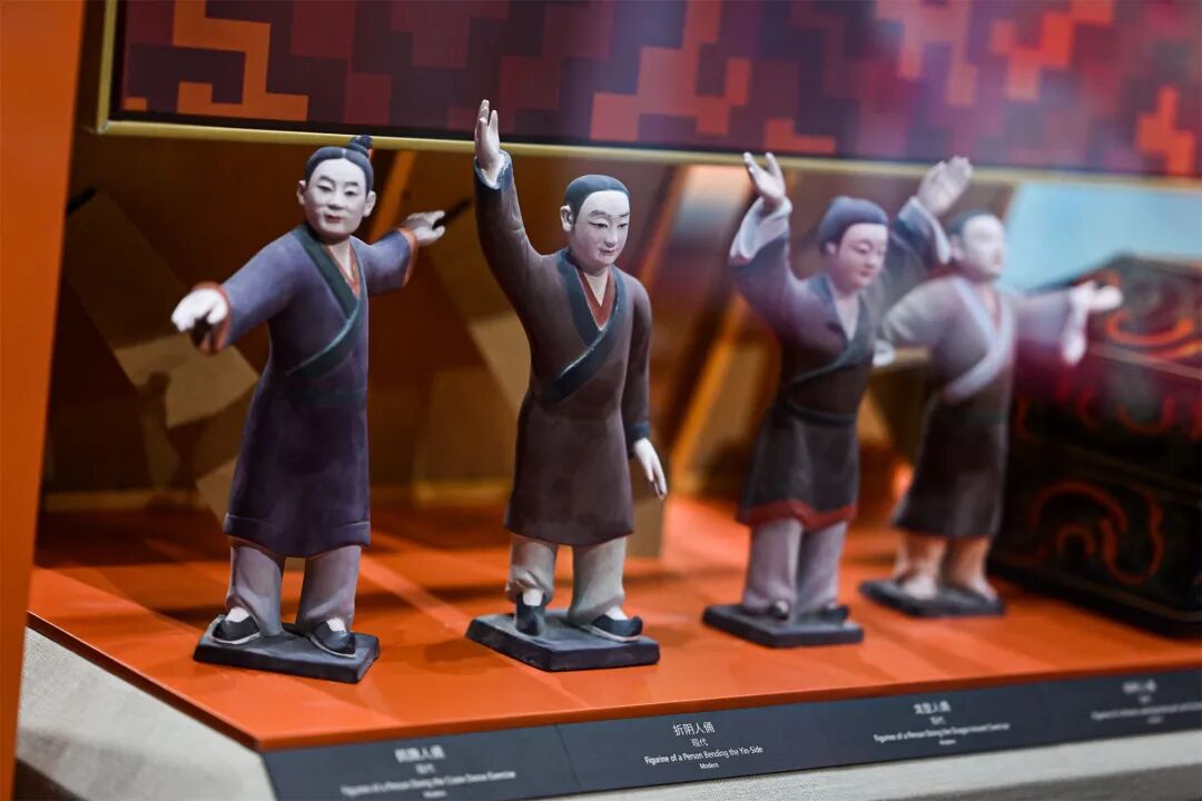 跃动千年,导引不朽,马王堆《导引图》主题展共计展出52套93件藏品,通过“律动乾坤”“导引春秋”“着手生春”三大单元,输出物质有形与精神不朽的多重精彩看点。