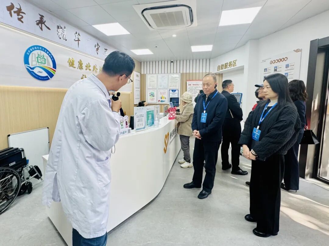 部分区人大代表来到北外滩街道社区卫生服务中心惠民路社区卫生服务站、天潼路吴淞路口袋公园,就本区民生实事项目完成情况开展集中视察。