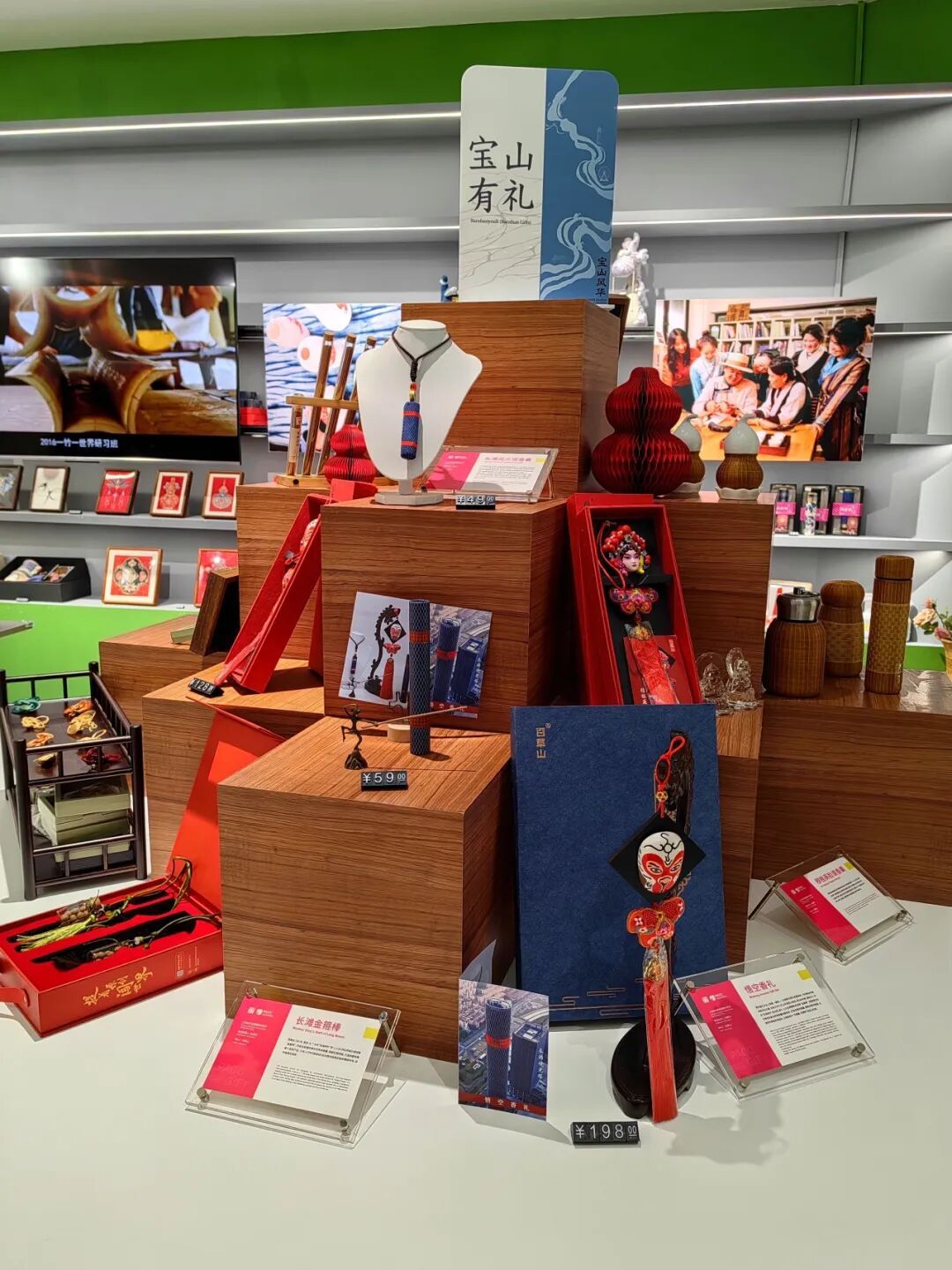 顾村香囊:“百草山香囊”传承和保护了传统民俗技艺和创新的设计元素,其特色悟空香礼以北上海第一高楼——长滩观光塔为灵感源泉,巧妙融合中国传统文化元素,将180米高、直径25.7米的“定海神针”观光塔,按1:1125比例精制成线香“金箍棒”;把脸谱化的孙悟空形象与传统香囊创意结合,打造出悟空香囊,搭配孙悟空香插、长滩观光塔挂件的组合。让地标成长“可佩戴、可感知”的宝山礼物。