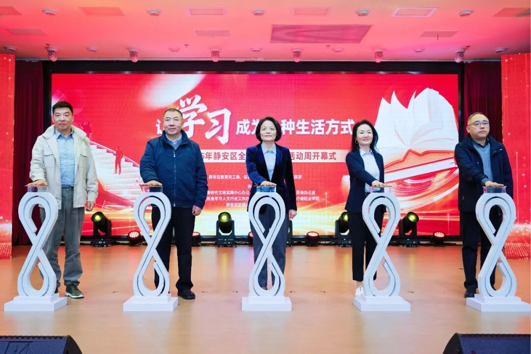 随后,徐静、龙婉丽和王松华共同启动2025年静安区全民终身学习活动周。据悉,活动周期间将推出老年数字教育进社区、市民终身学习人文行走等系列活动,以数字化赋能、沉浸式体验、实践型学习等多元形式,让学习资源触手可及。