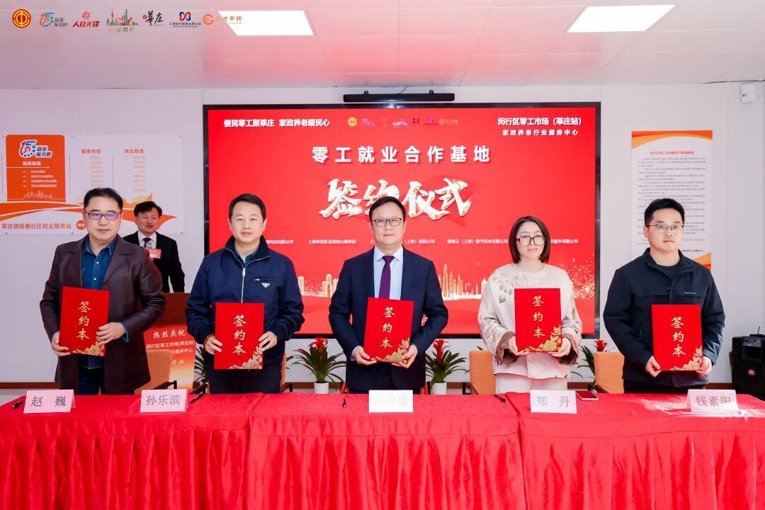 活动现场,乙才甲聘集团创始人昌梦晨代表市场,与金海悦心颐养院、健康云(上海)数字科技有限公司、上海来咖普云养老服务有限公司和上海收钱吧互联网科技股份有限公司举行就业合作基地签约仪式,建立“岗位储备—人才输送—跟踪管理”合作机制,未来将定向输送合格零工人员。