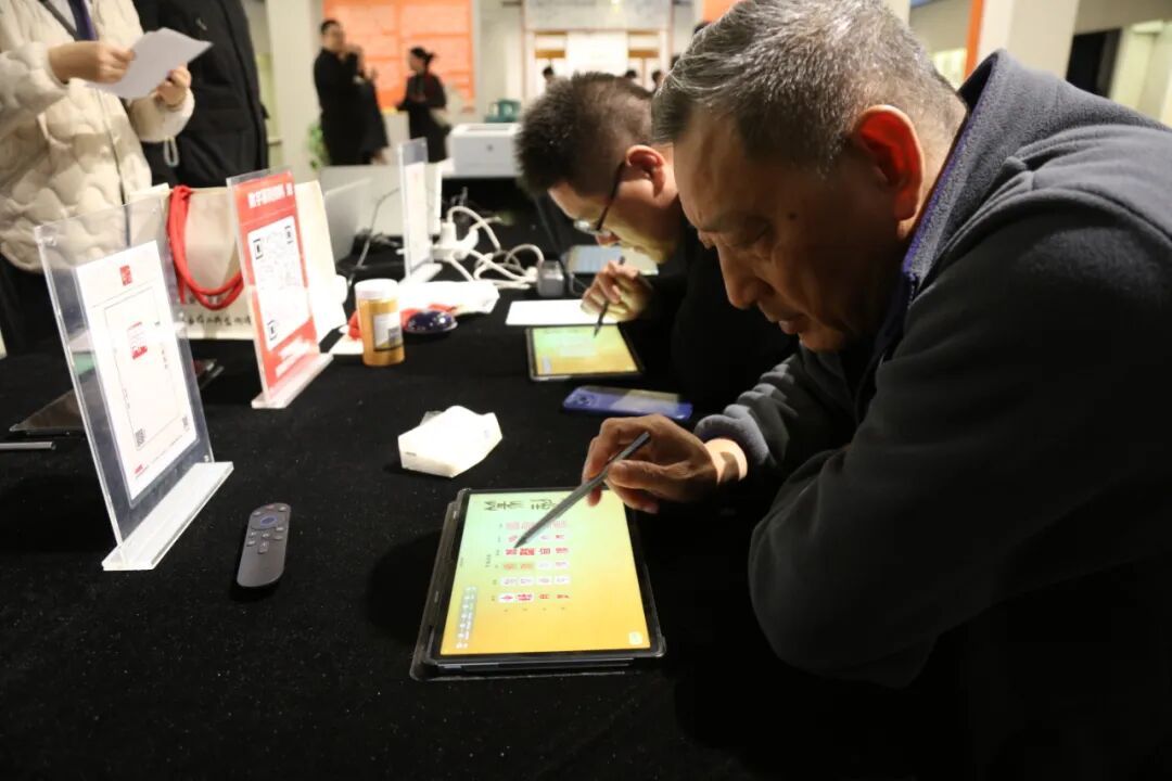 第二届数字篆刻大赛获奖作品展同样聚集了不少篆刻爱好者。在数字篆刻体验区,男女老少都好奇地拿起触控笔,在平板上“刻”起自己的专属印章。传统金石艺术与数字科技的碰撞,让古老技艺瞬间“活”了过来,变得触手可及。“我们用高科技降低艺术门槛,让篆刻从小众走向大众,让孩子老人都能玩转篆刻!”韩因之说。