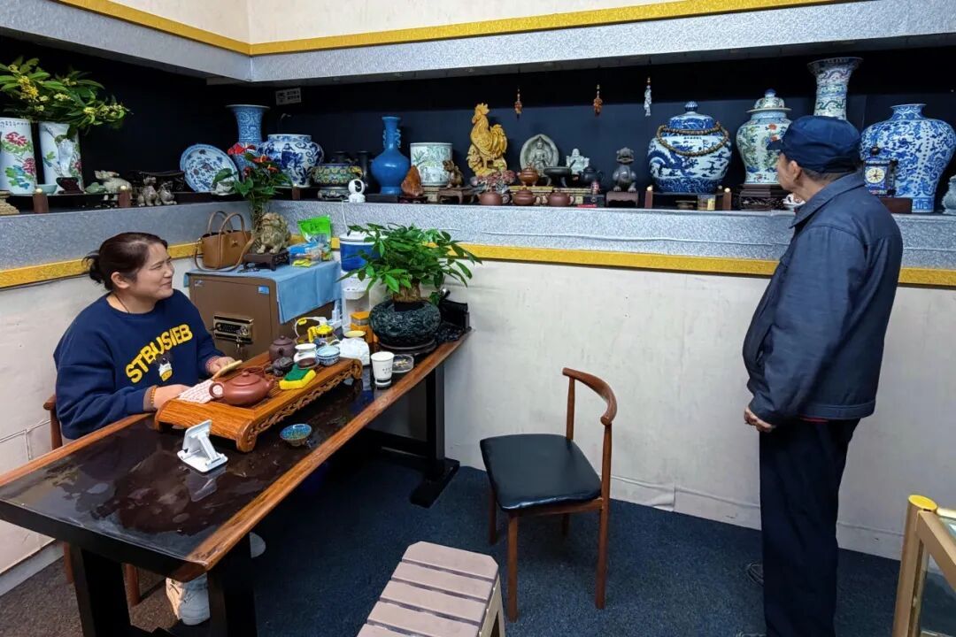 一个个摊位上 一件件古玩被精心布置 仿佛在诉说着它们各自的故事 点击观看视频 走进共康古玩街,你就走进了一个生机勃勃的小世界。这里是共康路557号,一个藏着无数惊喜的角落。空气中飘着淡淡花香,耳边是清脆鸟鸣,眼前是琳琅满目的古玩玉器,每次来都能发现新乐趣! 逛花鸟区 治愈一整天 ONE 谁说城市里没有自然乐趣?共康古玩街的花鸟区就是一片绿色乐园。 花卉区如同打翻的调色盘,成百上千盆鲜花整齐摆放,各种颜色、各种姿态的花朵交织在一起,如同彩虹般绚烂夺目。无论是雍容华贵的蝴蝶兰,还是小巧可爱的多肉植物,这里应有尽有。 水族区更是让人大开眼界。各种鱼儿应有尽有,有的活泼好动,有的安静,还有的很害羞。最壮观的可以说是发财鱼了,一面墙大的鱼缸里有好几百条红彤彤的发财鱼,它们的胆子很小,只要一有动静就“唰”地一起向上,又“唰”的一下向左,像惊弓之鸟似的。 鸟店也是让人流连忘返的地方,有会说话的沙和尚鸟;有白头偕老的相思鸟;有色彩斑斓的鹦鹉;还有给人带来喜讯的喜鹊。它们用清脆的鸣叫声迎接每一位来访的客人。 淘古玩区 发现时光之美 TWO 古玩区没有花鸟区的喧嚣,却多了一份静谧和雅致。各式各样的古玩字画、文房四宝、玉器陶瓷等珍品琳琅满目。在古玩玉器店里你会发现晶莹剔透的玉器、古色古香的铜器、典雅素洁的瓷器……一件件都是那样精致。 一位经营和田玉二十多年的商户分享道:“挂件比较好卖,还有一些小精品。”在这里,即使不懂行的人,也能感受到这些物件身上承载的时光故事。 一位古玩收藏爱好者分享他的淘宝经:“平时会来古玩市场,挑选一些喜欢的钱币,正常会买铜钱,还会买一些铜的杂件,就是一些老的物件。收藏的乐趣可太大了,历朝历代它上面都有文字。” 寻宝小贴士 逛共康古玩街,这些小建议能让你玩得更尽兴: 赶早不赶晚 周末上午人流相对较少,可以慢慢挑选。 多问多聊 店主们都很乐意分享宝贝背后的故事,听听他们的介绍长知识。 慢慢逛 这条街值得细细品味,匆忙会错过很多精彩。 相信眼缘 看上什么就别犹豫,有些宝贝错过了可就真没了。 在这里,你会发现生活不再是单调的两点一线,而是充满了各种有趣的可能。无论是想为家居添置一抹绿意,还是想寻找一件有故事的藏品,或是单纯享受悠闲时光,共康古玩街都能满足你。
