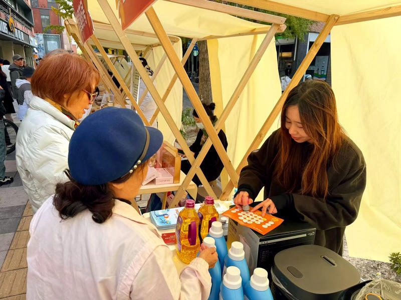 市集现场,金黄的银杏叶如雨纷飞,与琳琅满目的摊位交相辉映。特色美食区飘散着糖画、桂花糕的甜香,手作摊位陈列着银杏叶书签、扎染布艺等文创精品,吸引居民驻足挑选。市集特别设置“杏运茶铺”,由专业中医师提供秋季养生咨询,将健康服务送到老人身边。而同步举办的亲子银杏叶拼贴比赛,则构建了家校社协同育人的温暖场景。此次市集的摊位设置大都充分听取了居民意见,体现了“众人的事情由众人商量”,让居民成为社区活动的策划者和受益者。市集的成功举办体现了新时代基层治理“三会”制度的成果。