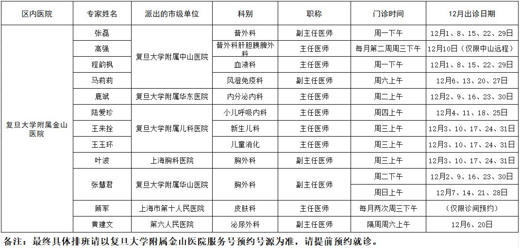 *市级专家门诊可能会有临时调整,请广大居民朋友以各医院官方通知为准。