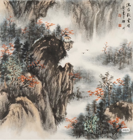 代表作品解析 《红叶满秋山》——青蓝云气里溢出的鲜活生命力 这幅作品最先打动人的,就是那片“大胆的”青蓝云气。蓝色在中国画里本不多见,而邵琦将它铺陈在山体之间,让画面更显通透、凉爽、有呼吸感。在这片蓝雾间,红叶像被光点亮一样跳出,每一簇都精准,这既是山中秋意的象征,也成为整个画面的节奏点。山体的墨色厚而稳,云气的蓝轻盈而灵动,红叶在两者之间,完成了一次非常当代的视觉平衡。这幅画是“动”与“静”的共存。 《满谷秋云生》——烟岚翻涌中的山谷静意 相比《红叶满秋山》,这幅作品显得更柔、更含蓄。云雾不是大片的色块,而是以墨与淡彩交融的方式呈现,像自然生成的氤氲气息。山体笔触更粗犷,近景的坚硬、远景的飞瀑,都被云气轻轻遮掩,让画面有一种“深远”的空间感。茅亭、树木、飞鸟的安排,也让静景中多了几分生机。 如果说《红叶满秋山》是外放的视觉能量,那《满谷秋云生》就是往内、往深里走的情绪。把两幅作品放在一起,会更清晰地感受到邵琦对山水的理解:不是简单的再现,而是用色彩去表达气息。青蓝的云气:清凉、流动、带着当代感。暖墨的山色:沉稳、厚重、延续传统。红叶的点亮:成为两个世界之间的桥梁。一冷一暖,一动一静,呈现出“传统笔墨+当代色彩”的独特风格。 欢迎莅临张渊艺术馆,在秋意渐浓的季节里,走入邵琦笔下的山水世界,感受传统与当代交融的色彩诗意。 开放时间:10:00—17:00(16:30停止入场,每逢周一闭馆) 地址:七莘路305号二楼