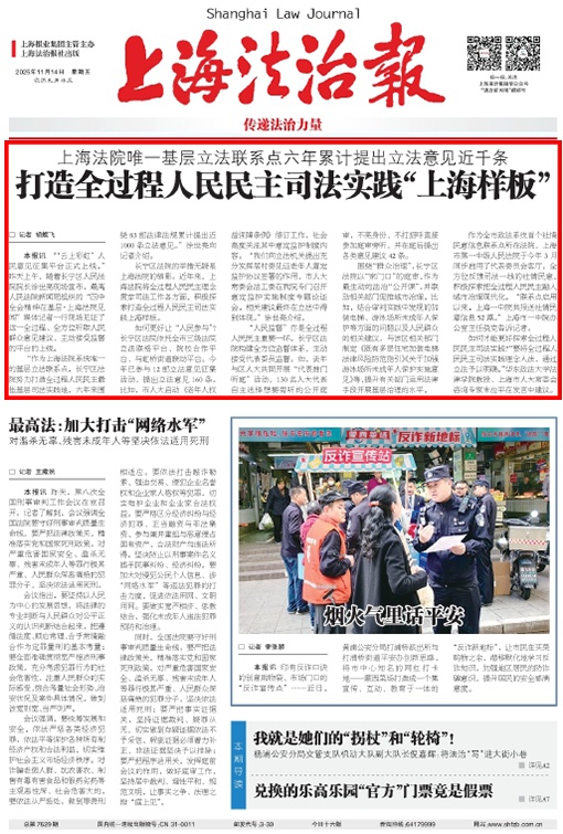 上海法院唯一基层立法联系点六年累计提出立法意见近千条