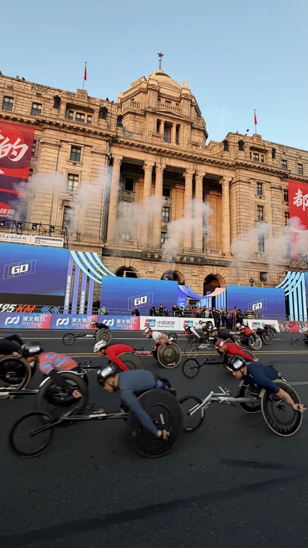 6点45分,竞速轮椅马拉松项目率先开赛。