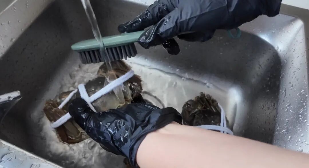 1.挑选新鲜螃蟹,以3-4两重的为宜,用毛刷将蟹刷洗干净。