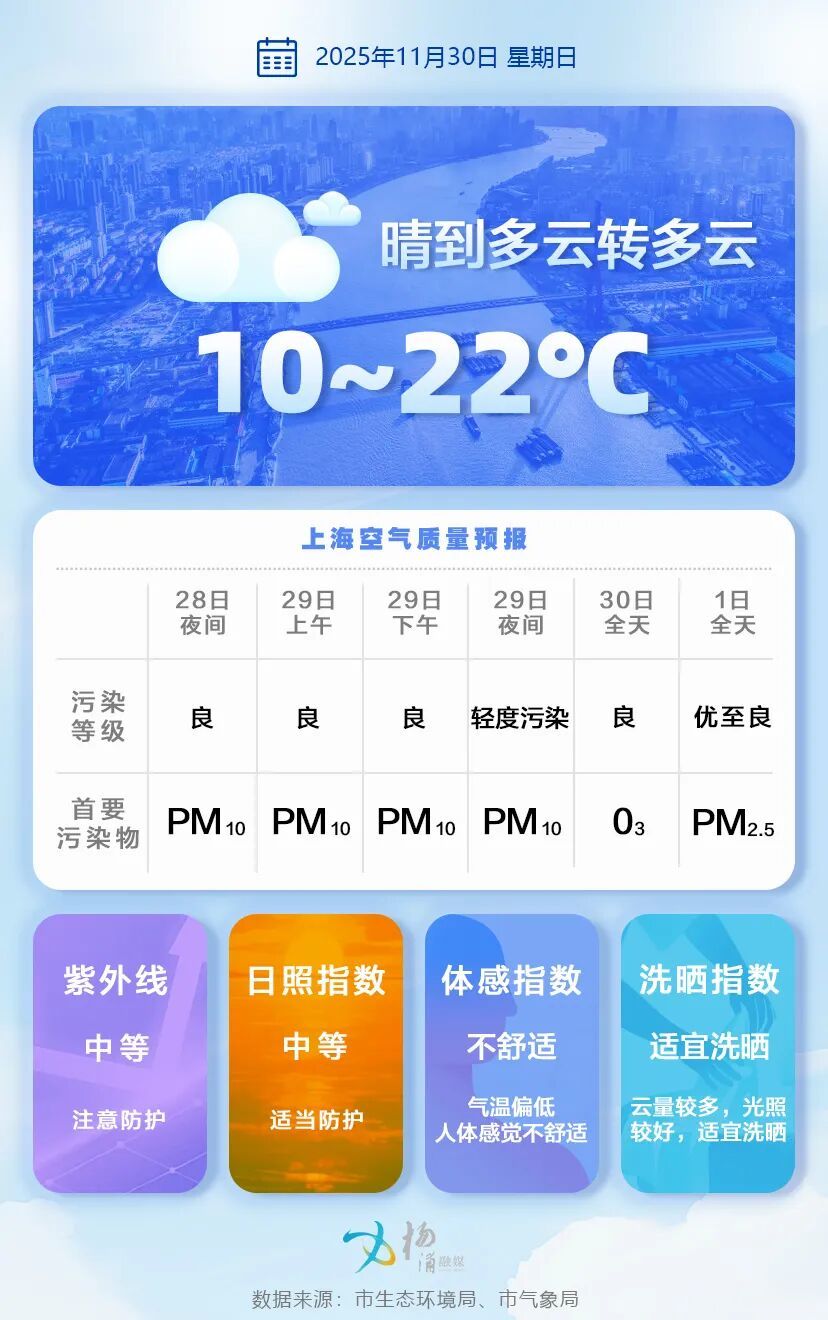 今天晴到多云,早晨局部地区有雾,夜里转多云。偏南风3~4级,全天气温在10~22℃,昼夜温差拉大,及时增减衣物。相对湿度90%~30%,火险等级气象指数:4级,注意用火用电安全。另外白天空气质量以良为主。