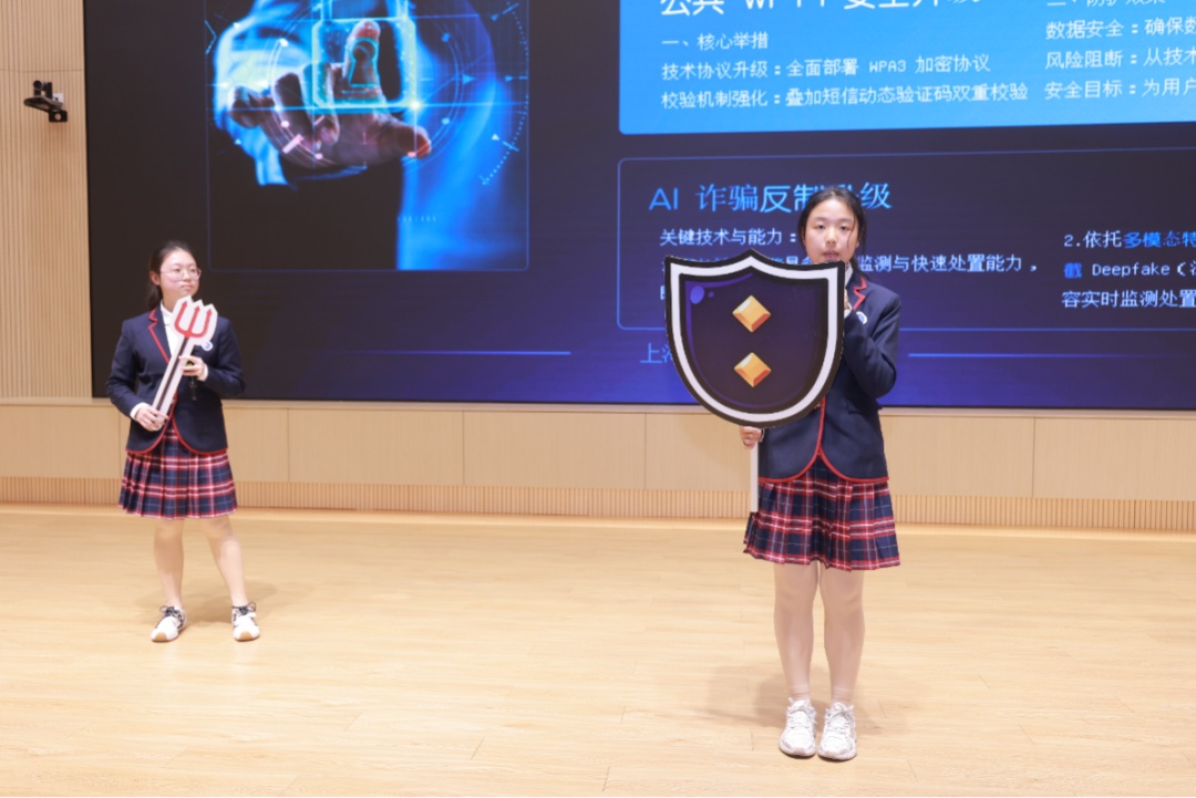 此次活动由徐汇区检察院、徐汇区委网信办、徐汇区教育局联合主办。今年4月以“数字护航”为主题启动以来,全区46所学校的340余名学生组成80支队伍参与,经过多轮调研、方案打磨和比拼,最终初中组9支队伍、高中组6支队伍站上决赛舞台,聚焦“未成年人网络保护与个人信息安全”“数字时代AI工具的合理使用”“家校协作对未成年人使用电子产品的监管”三大议题,进行了深入的调研和精彩的展示。