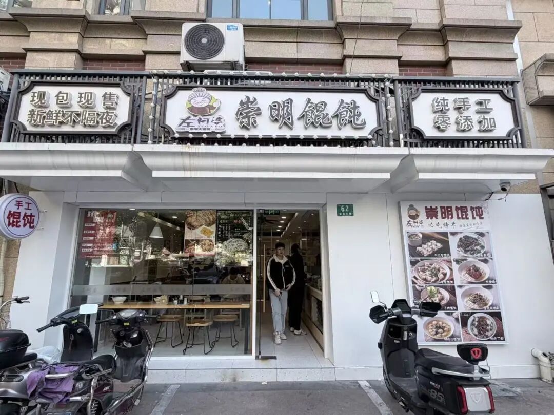 店铺主打崇明馄饨和各色面食,他们家的荠菜鲜肉馄饨精选新鲜荠菜搭配优质鲜肉,馅料的菜肉比例比较平衡,荠菜的清香与鲜肉的醇厚完美融合,一口咬下去汁水四溢,劲道爽滑的面皮包裹着饱满扎实的内馅,每一口都是实打实的满足感。